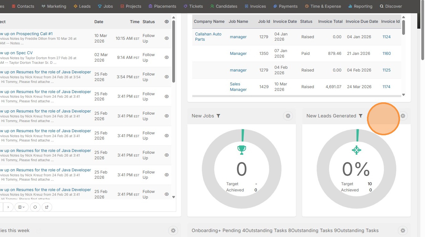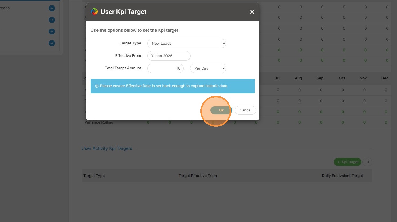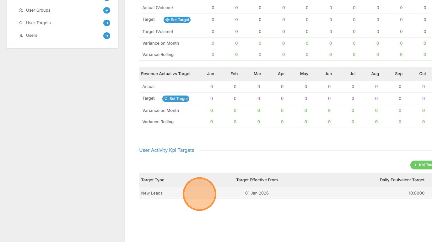 13. Now you can see under New Leads Generated Paul Gaffney has a target of 10 per day.