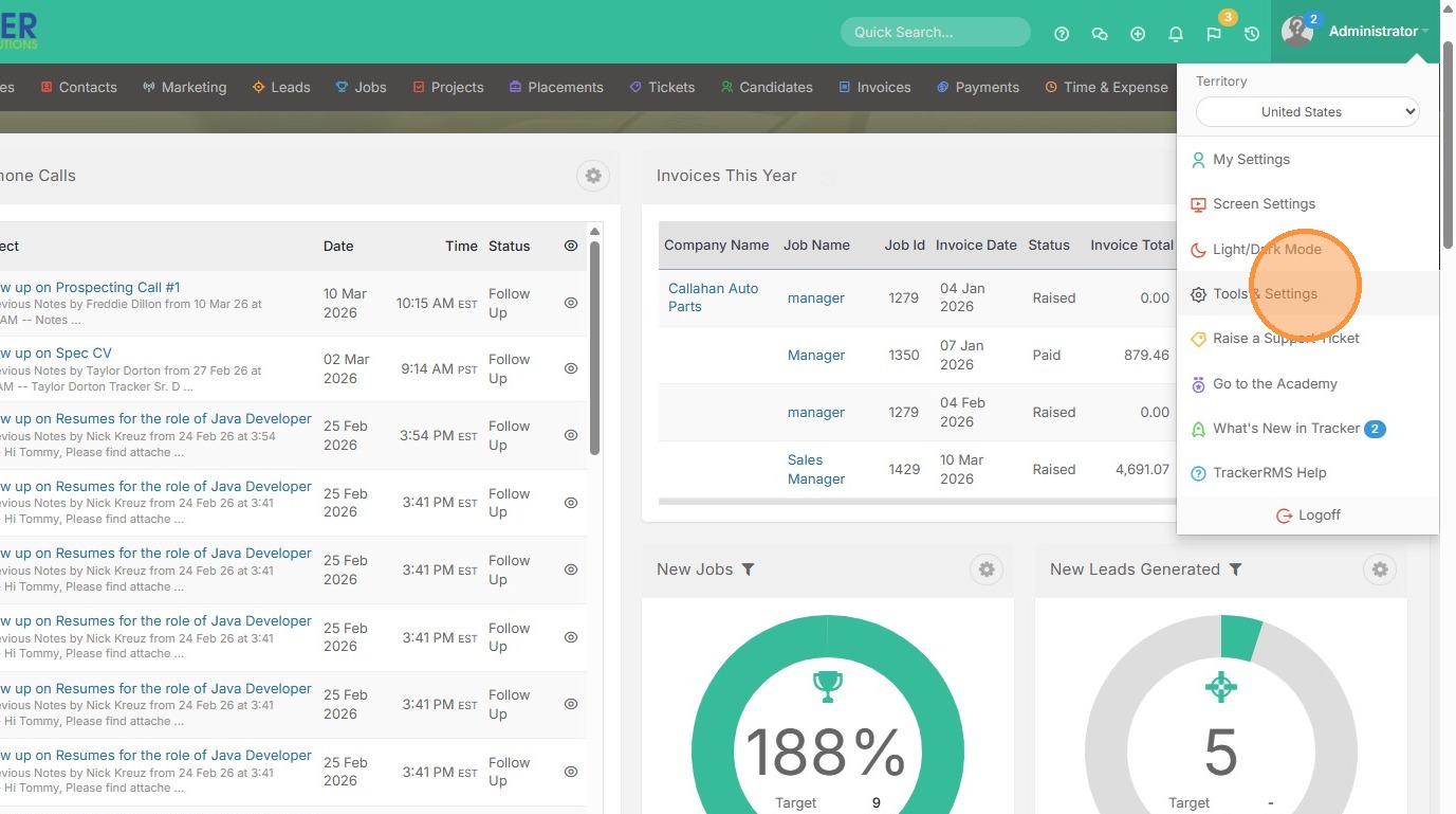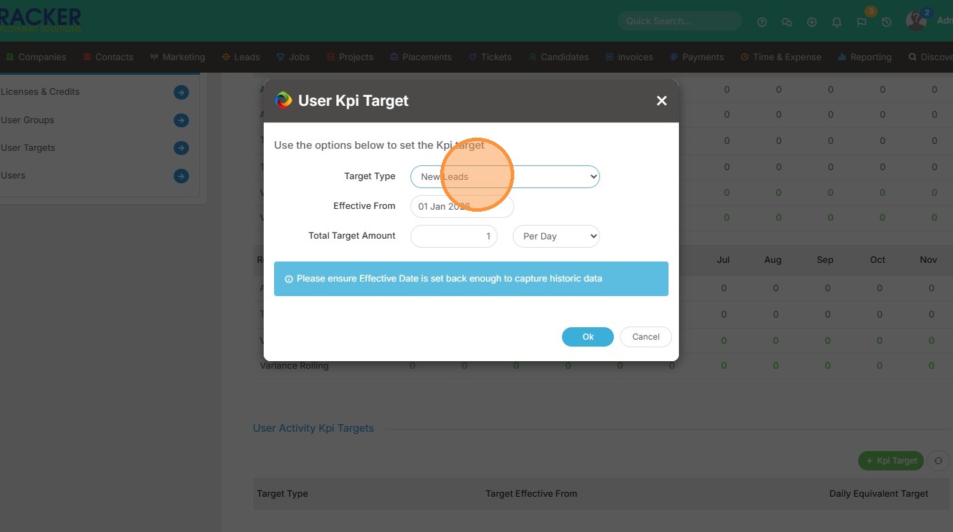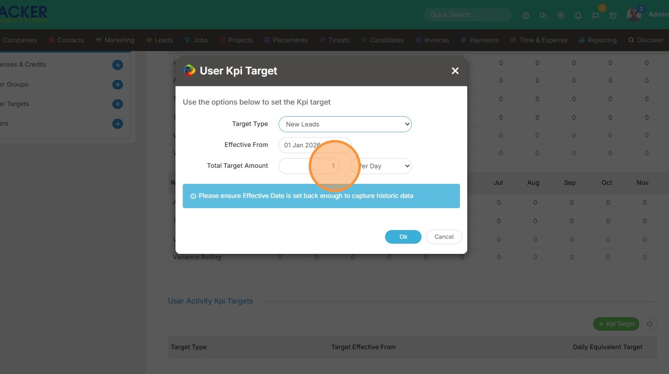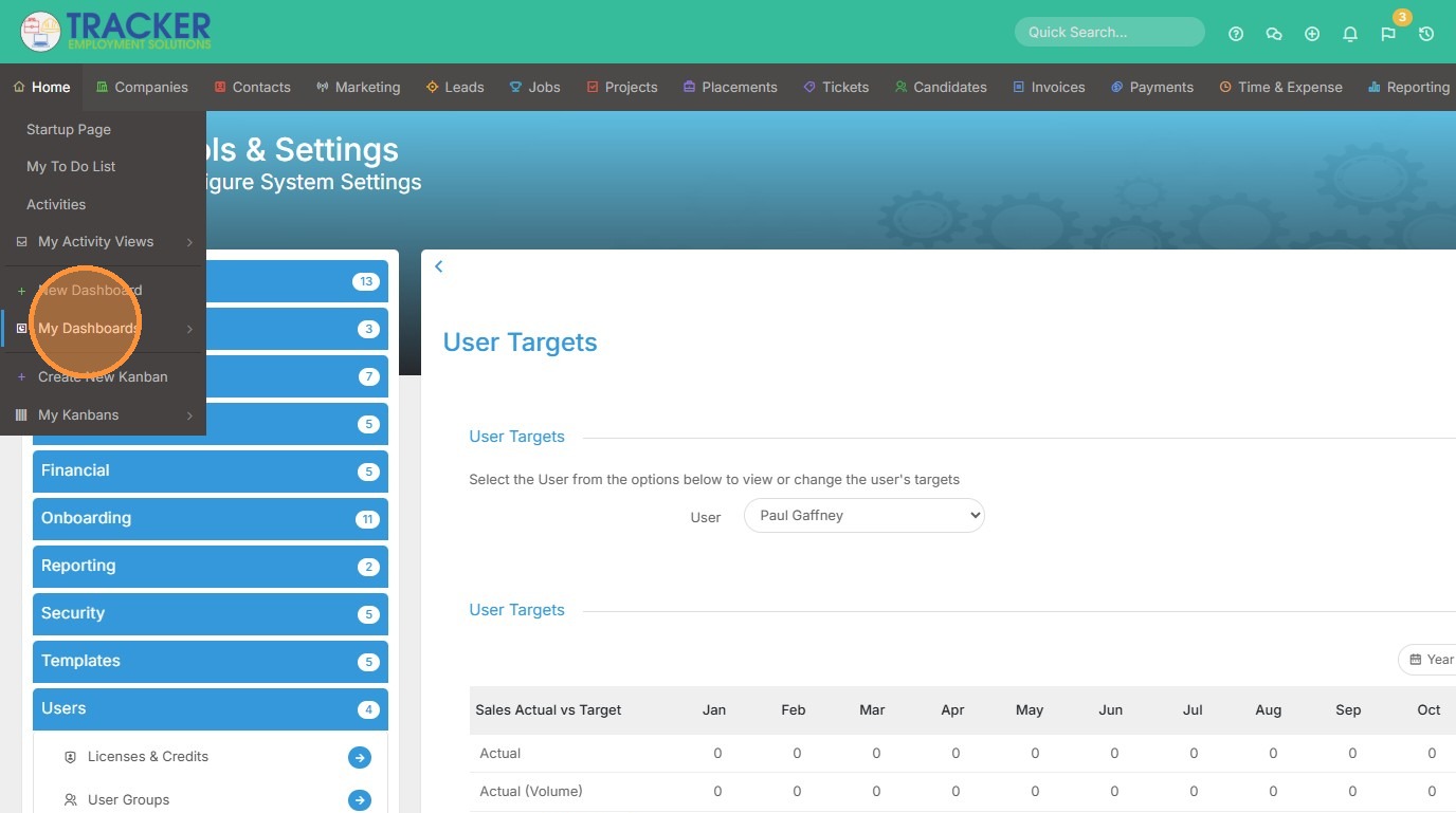 13. Now you can see under New Leads Generated Paul Gaffney has a target of 10 per day.