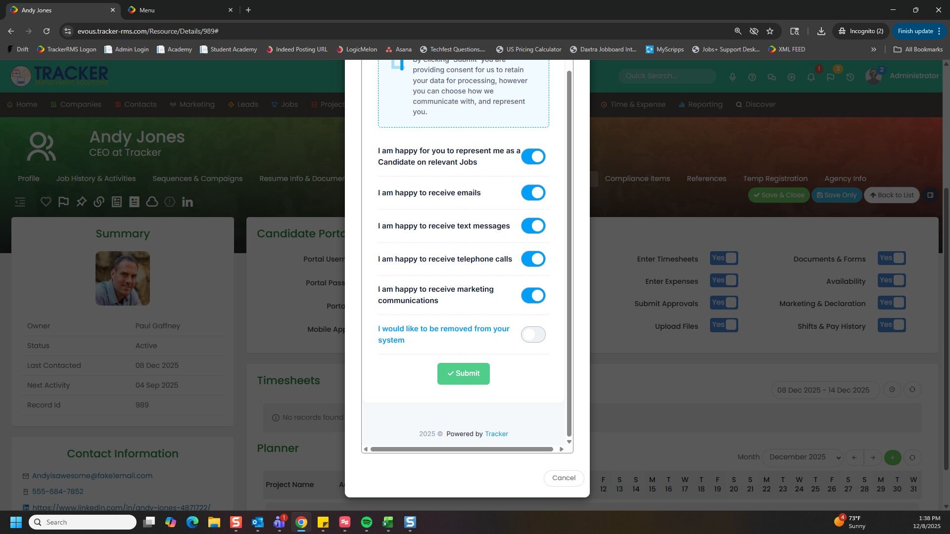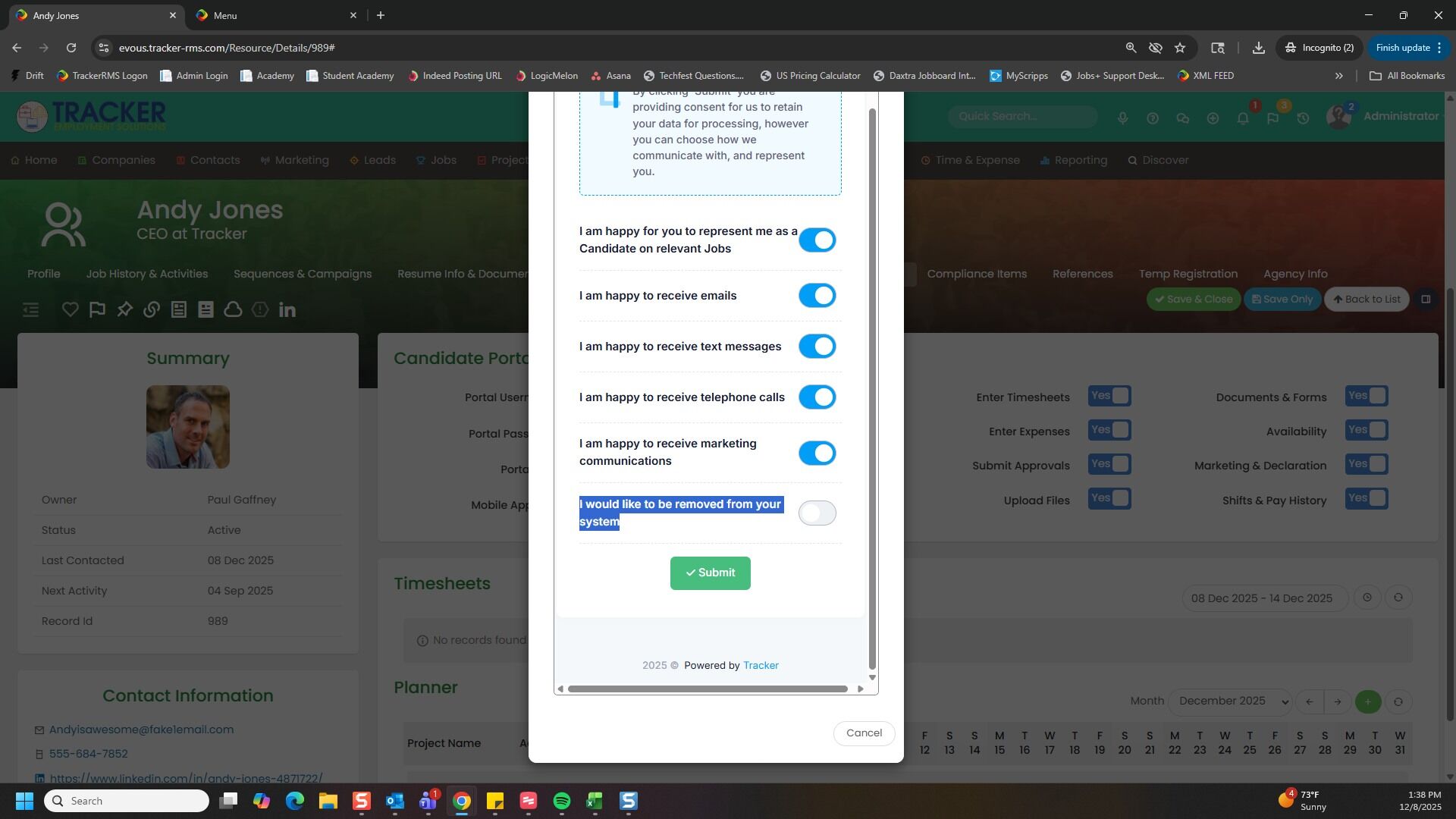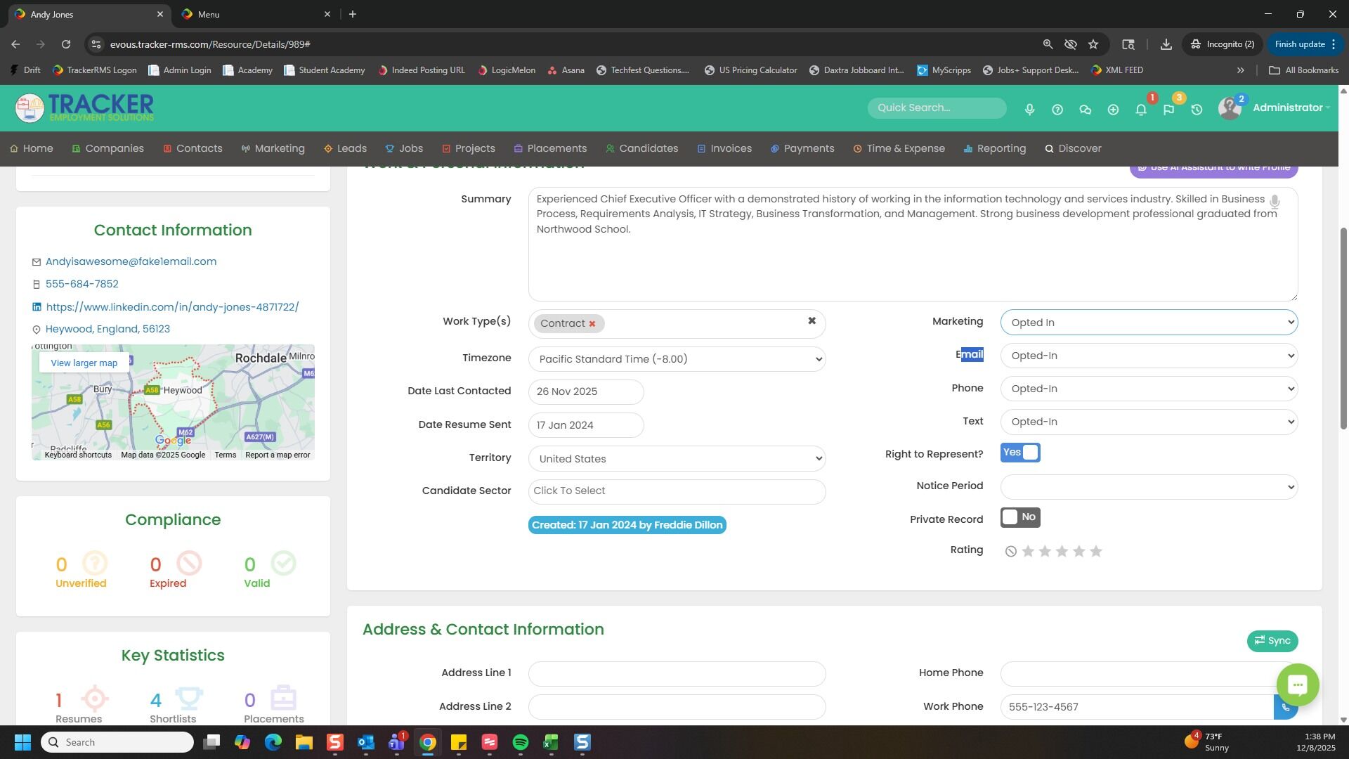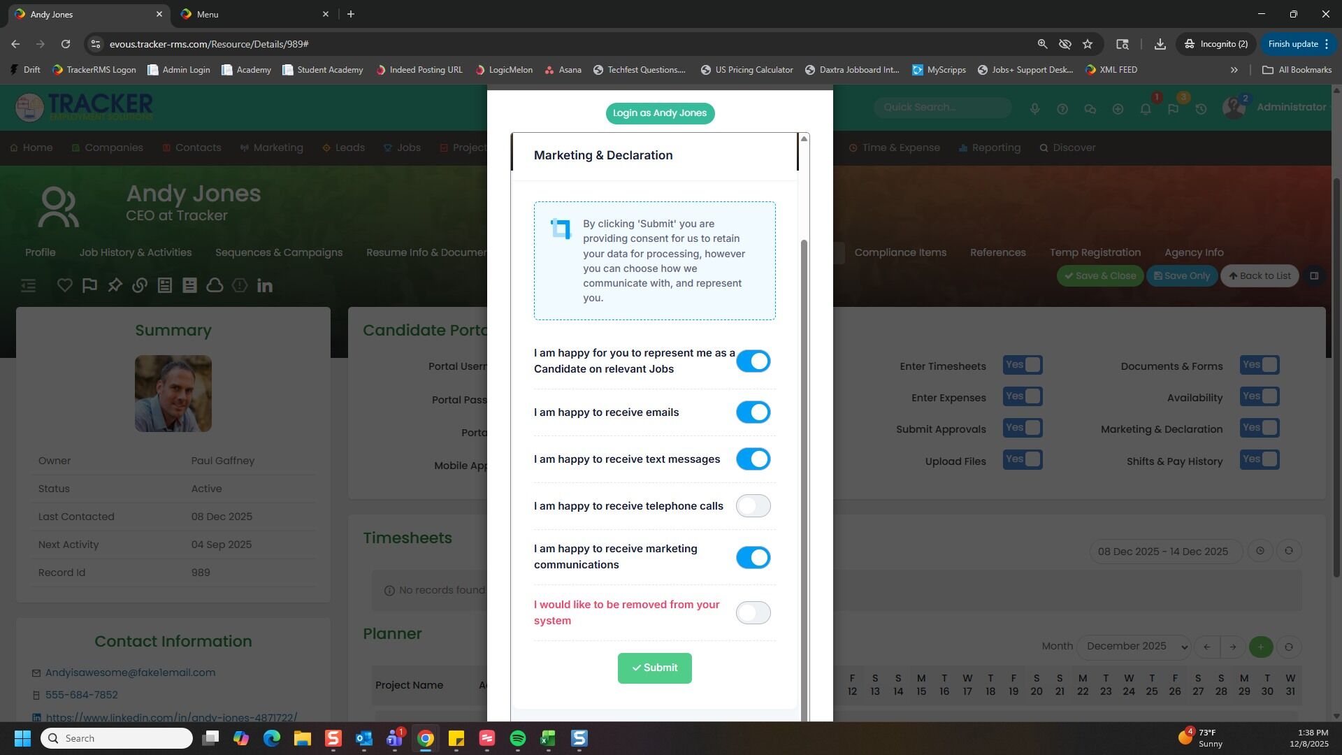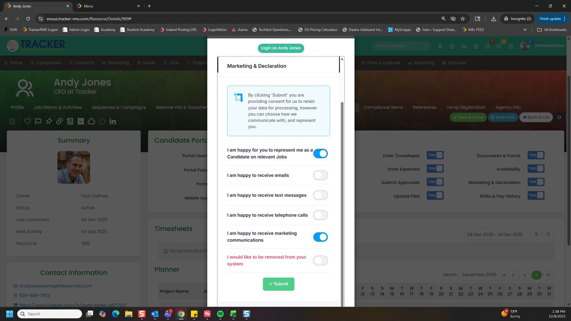 9. Now in the candidate record you can see they have opted in for all marketing options.
