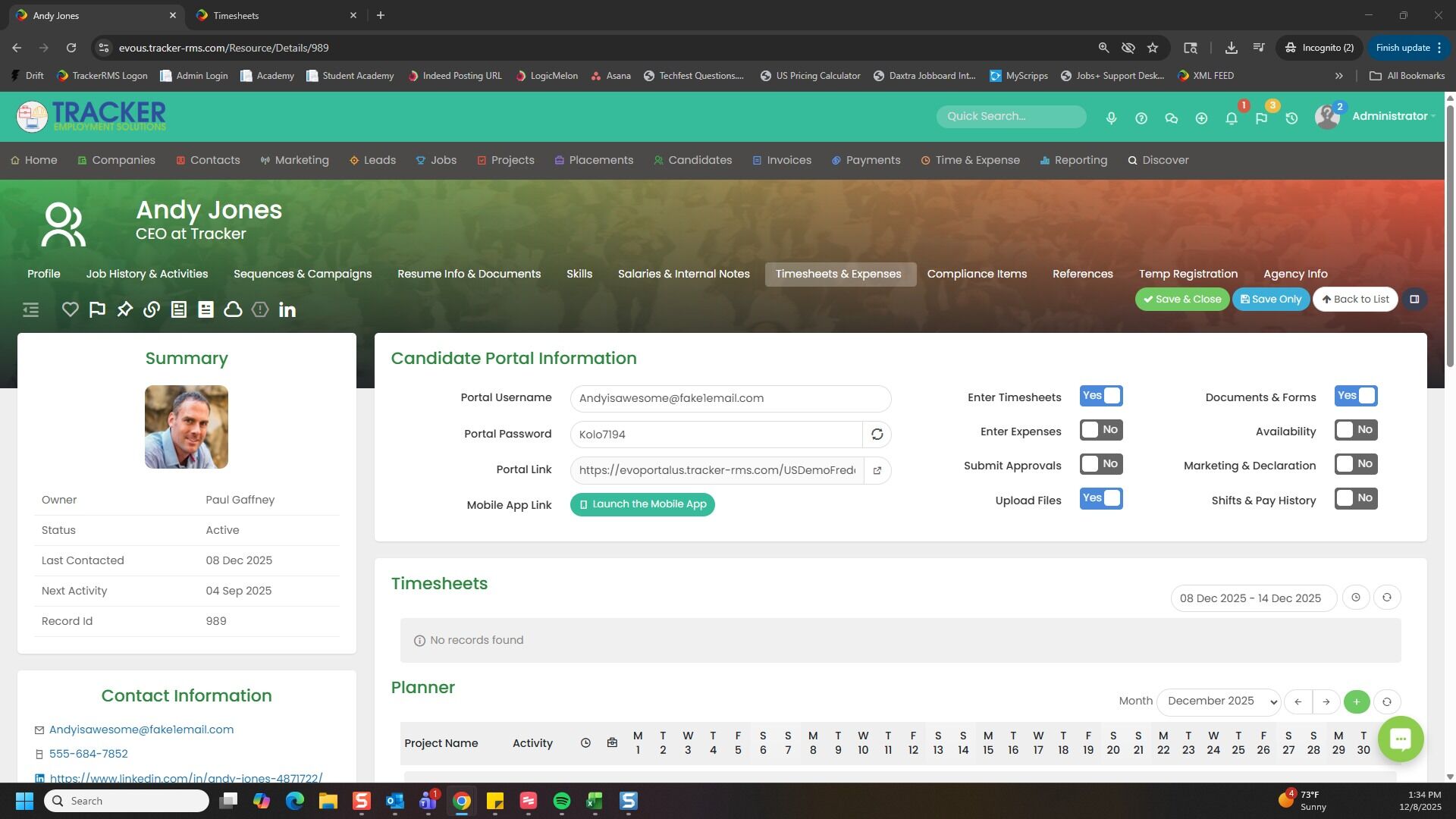 3. Now you can see in the candidate's portal they have an area under Compliance that they can complete. This section gives you permission to represent them.
