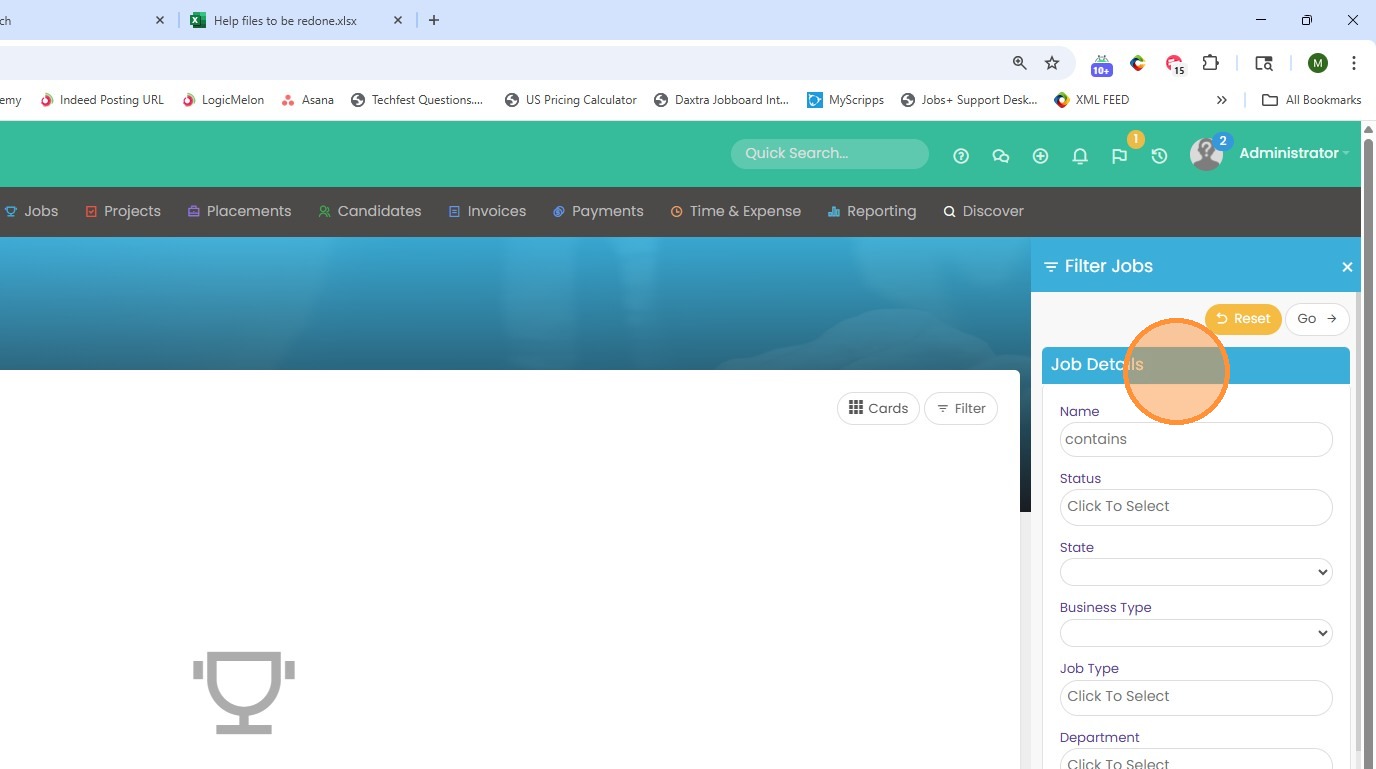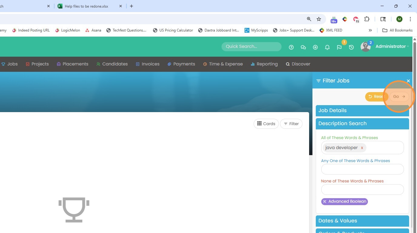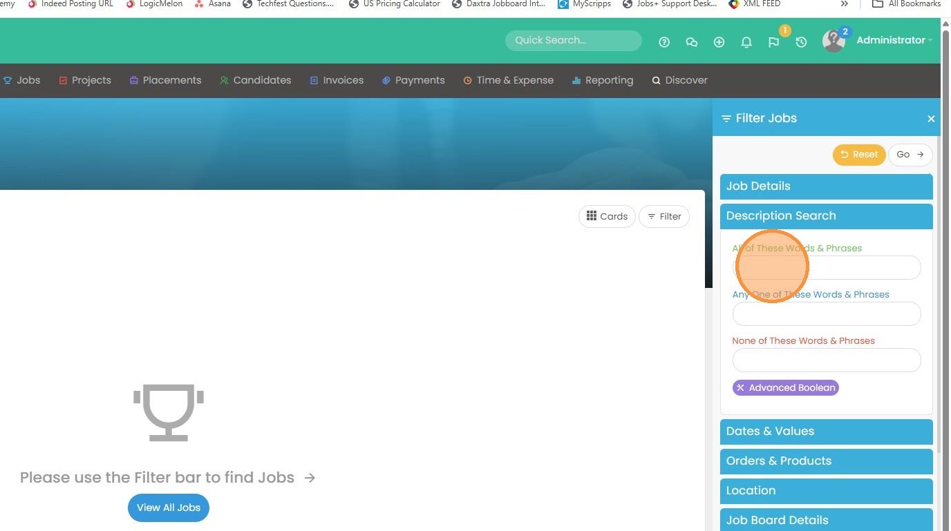 2. This is helpful if you need to filter jobs using a boolean search for certain keywords or phrases. For example, if you need to find candidates that were shortlisted in a job that had a specific job description using the keywords "java developer" in "Columbus, Ohio" this will help you find those specific candidates.