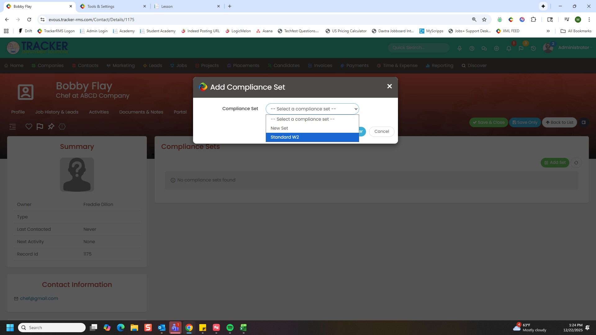 18. The same situation goes for a contact record compliance set. You can add the set the exact same way you did with the Company record.