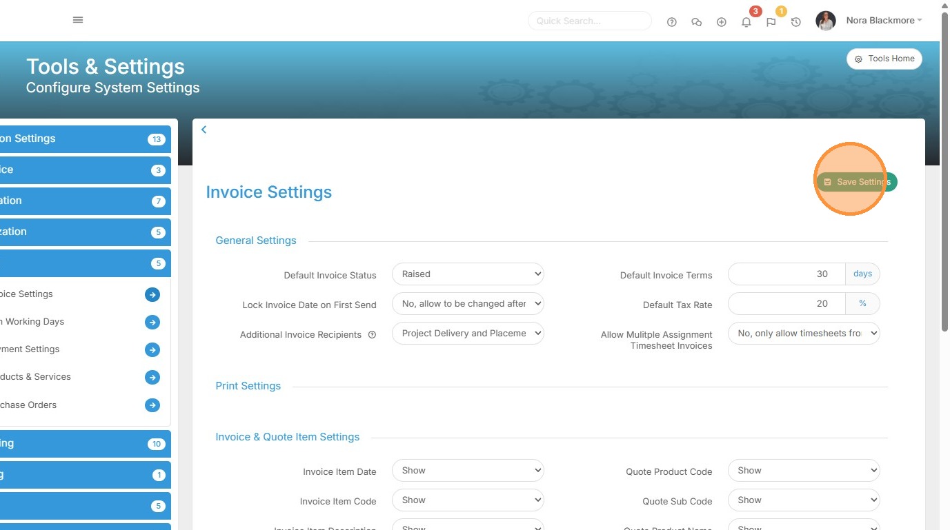 15. We'll start with Invoice Settings, click to access this area.
