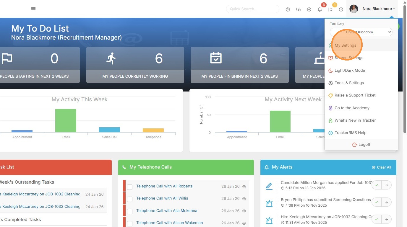2. The first step is to go to "My Settings", accessed via the Profile Menu.