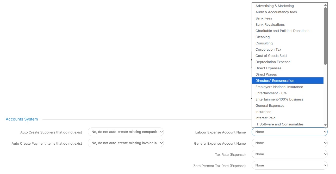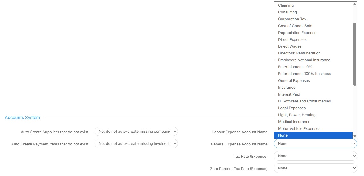 27. Next you'll want to select an appropriate option from the "Labour Expenses Account Name" drop down. Select which is most appropriate for your organisation.