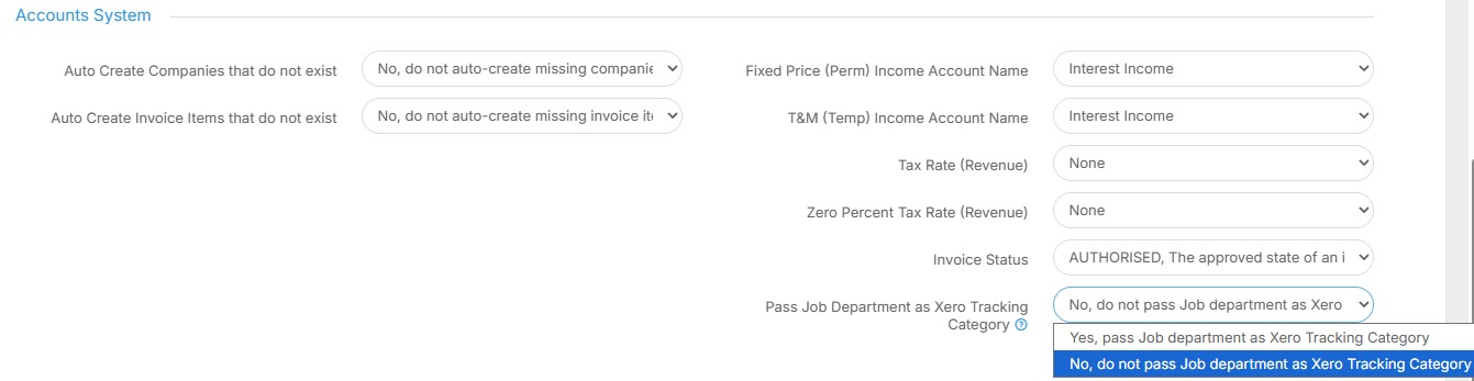 23. Finally, we have "Pass Job Department as Xero Tracking Category". If you select "Yes" please ensure you have a tracking category in Xero named "Departments" with options that match your Tracker Department names.