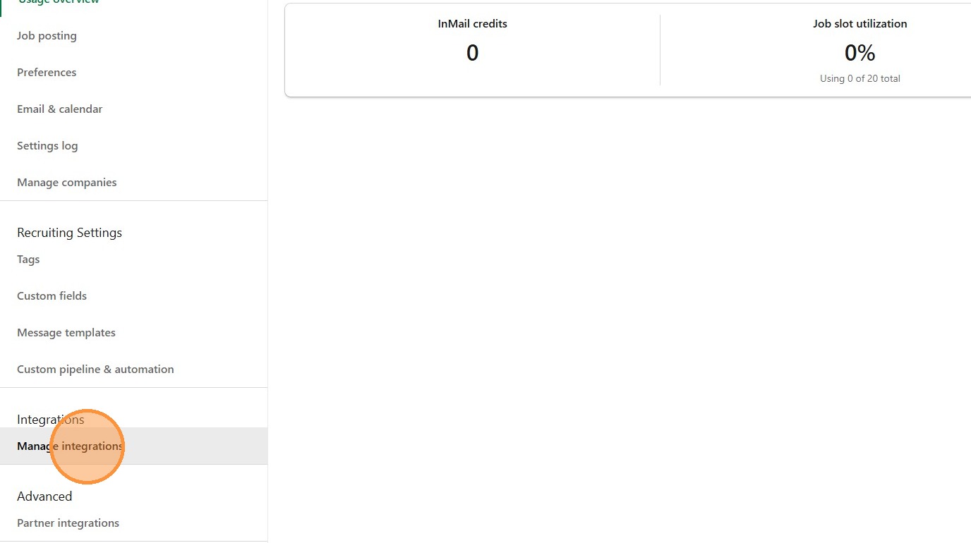 13. Under the left menu find and click on "Manage integrations".