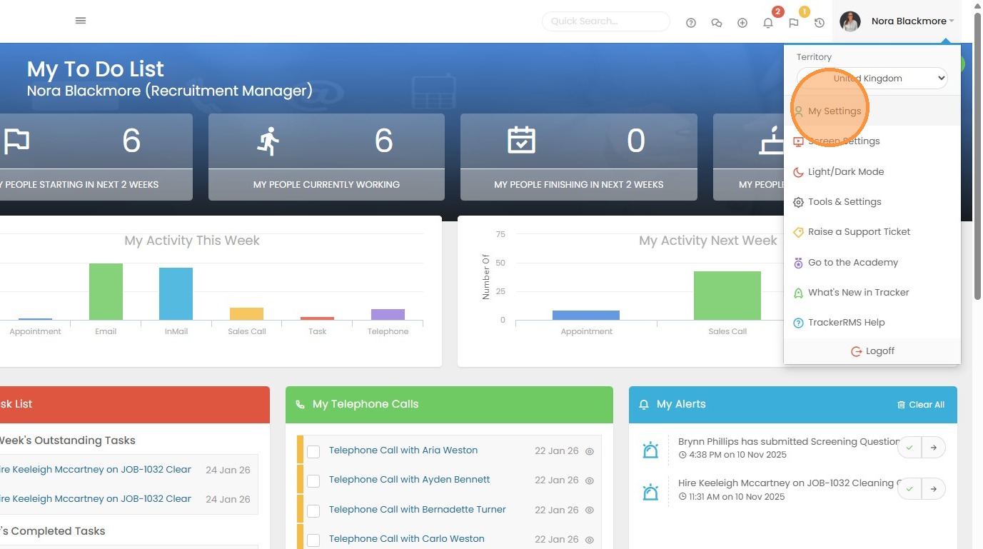 1. The starting point to enable the Integration is via your My Settings area which you can access via the Profile Menu.
