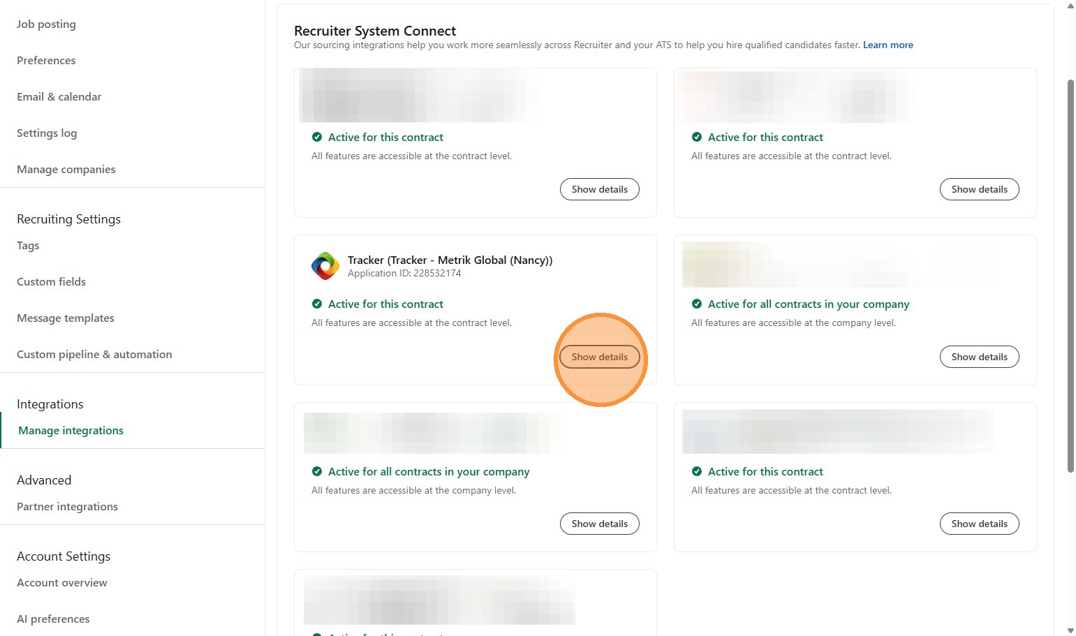14. You’ll see your Tracker Integration listed, click "Show details"
