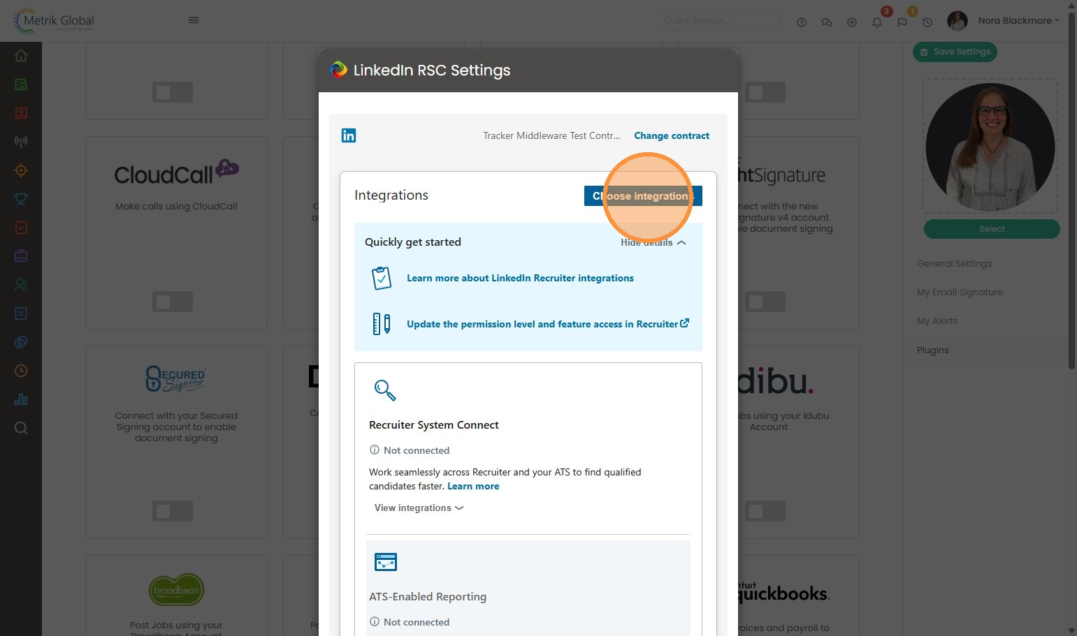 6. This next window is LinkedIn’s Onboarding widget, here as with before, if you have multiple contracts you can choose to change the Contract, and once the correct contract is displayed you’ll need to click Choose Integration.