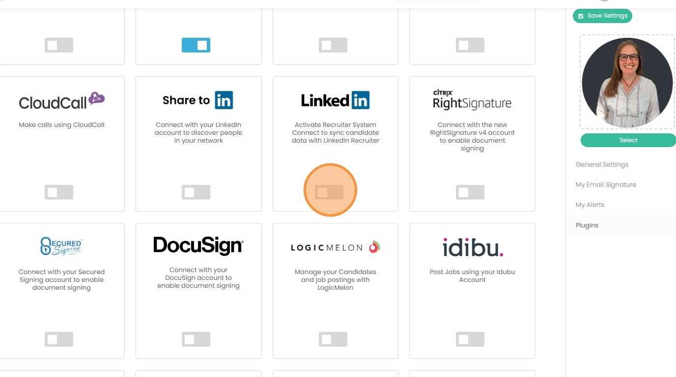 2. Here you can toggle on the Plug in for LinkedIn.