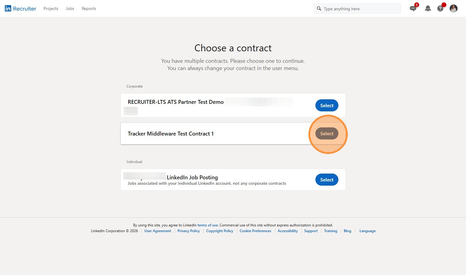 If you have multiple contracts you can choose the relevant one, otherwise choose the one listed under Corporate.
