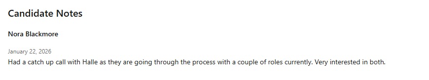 7. Candidate Notes are activities solely linked to the candidate record in Tracker.
