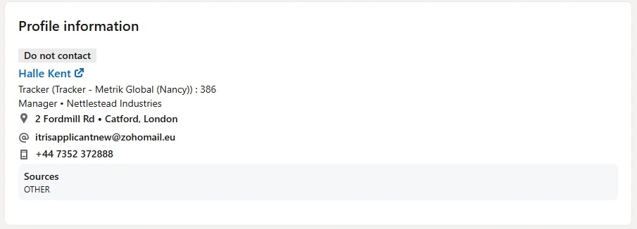 5. If the candidate is opted out of Marketing Preferences within Tracker a Do Not Contact badge will show in this area too.