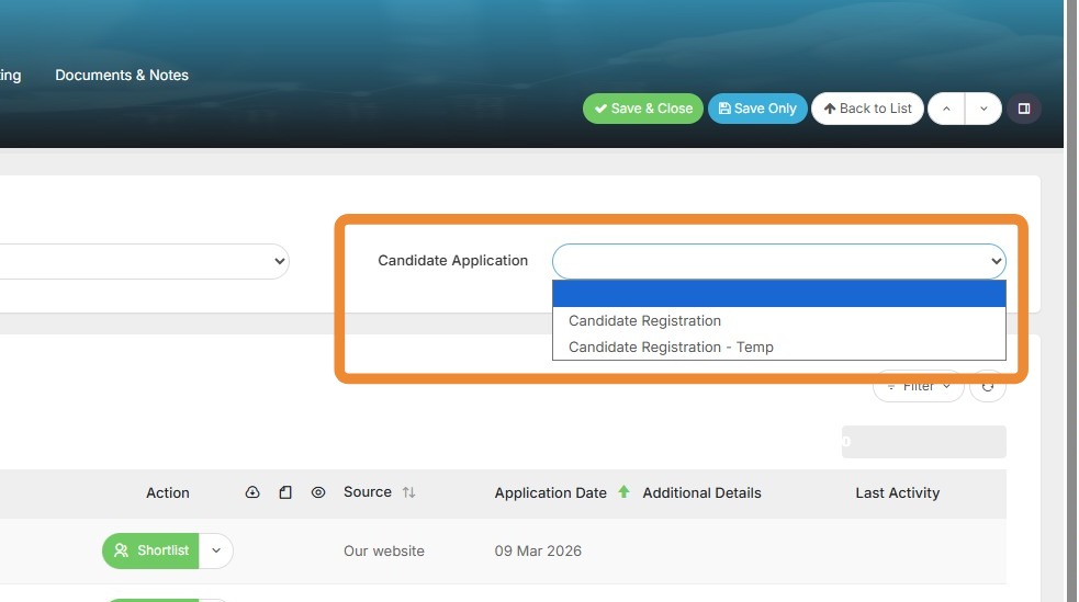 Longlist - as with Shortlist, but candidates land on the longlist instead, giving you a structured way to capture wider applicant pools before narrowing down.