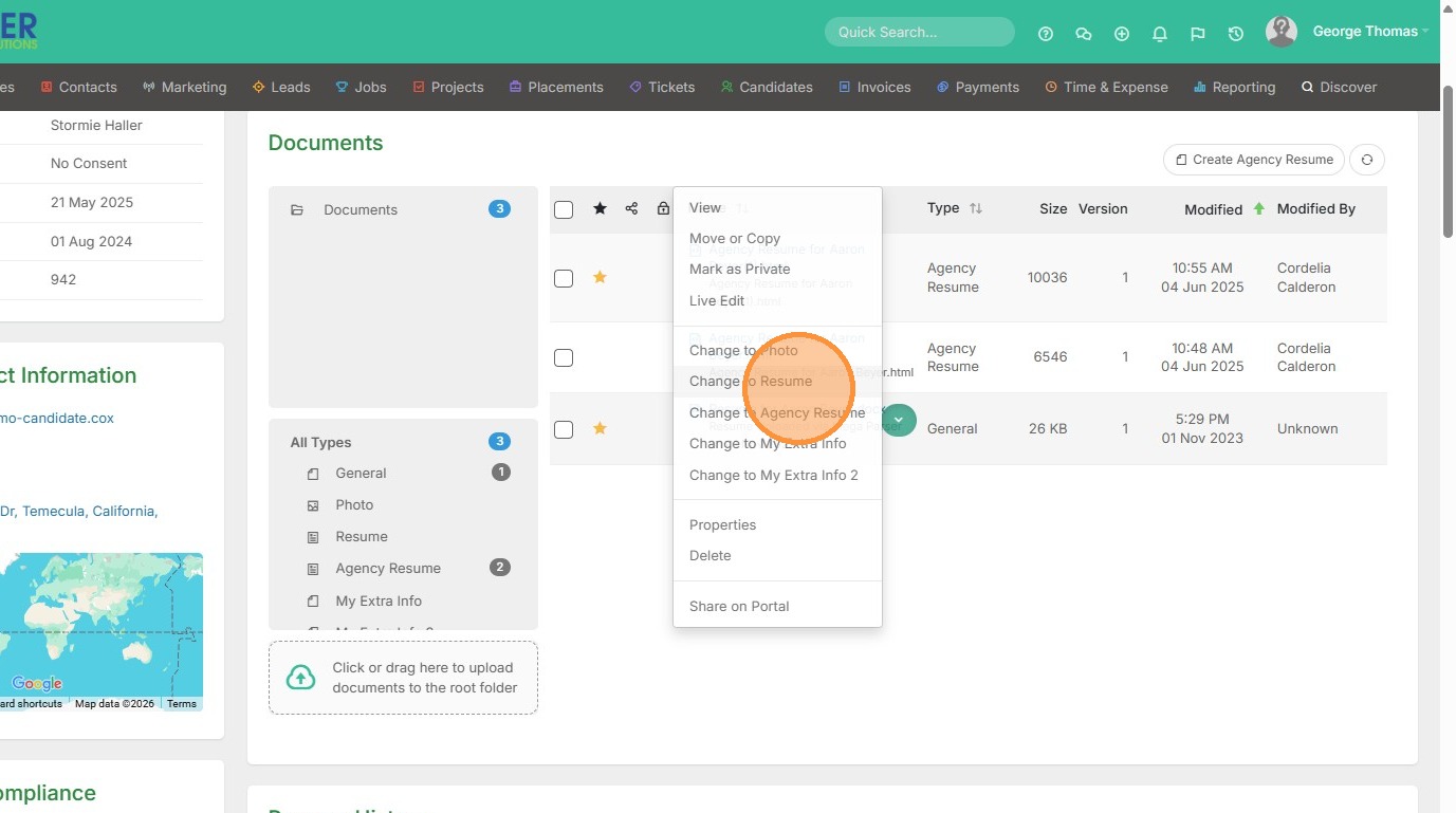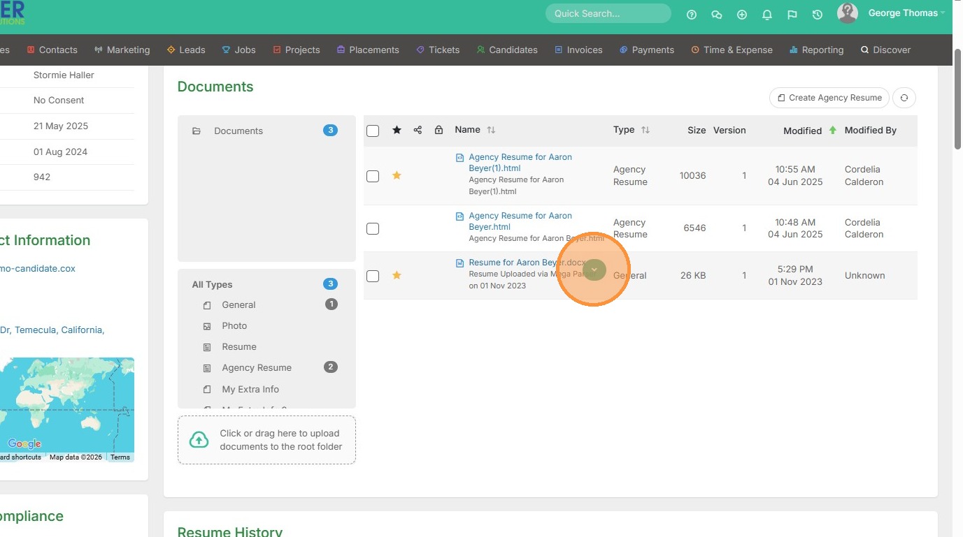 1. Click into your documents section within a candidate record.