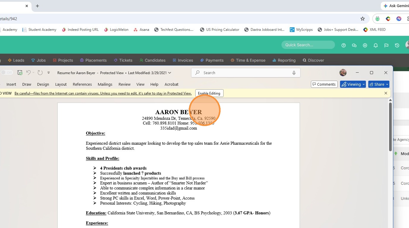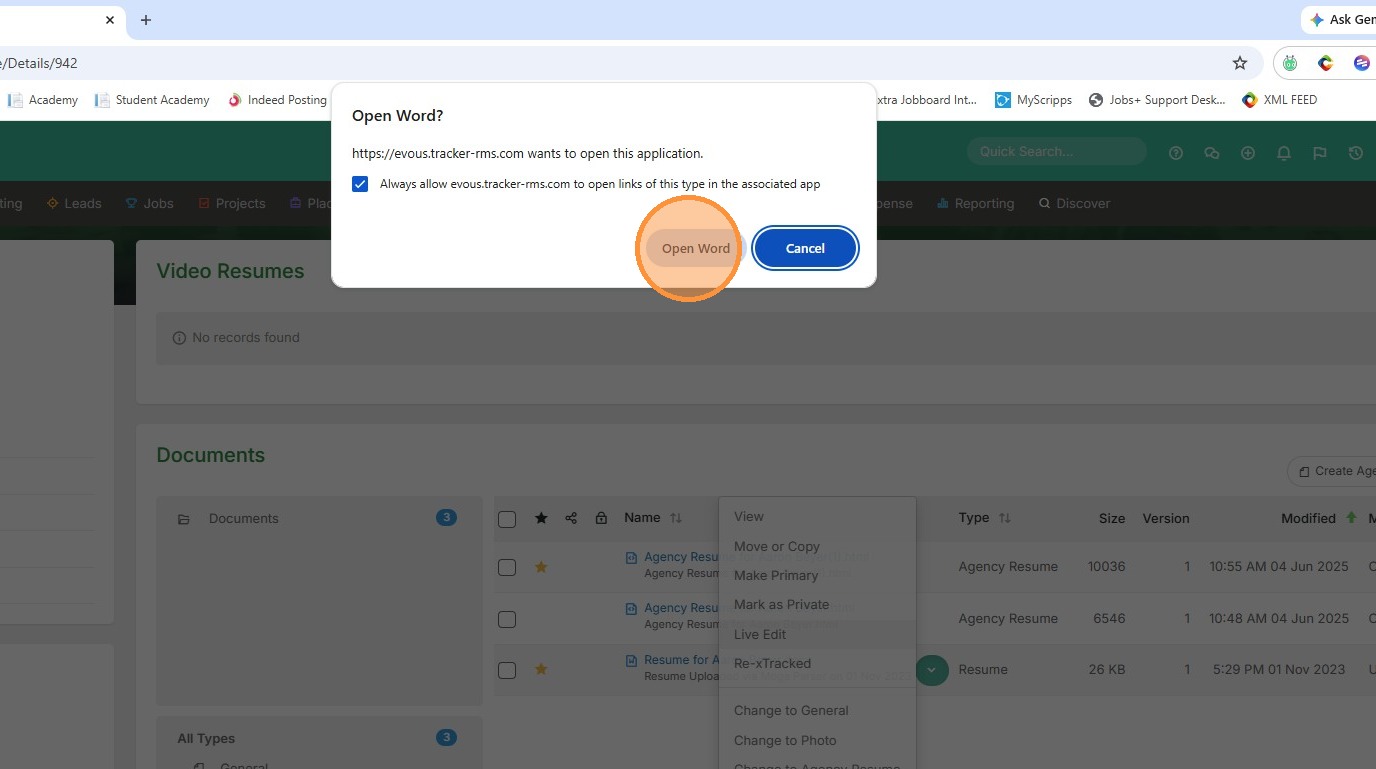 3. Open the document in word.