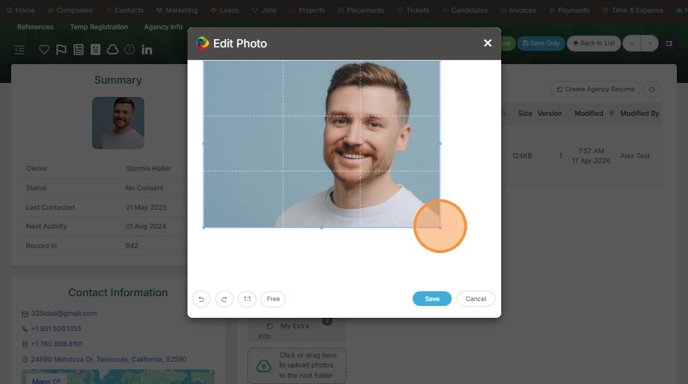 8. Or you can click on this corner of the photo and crop it by dragging the corner.