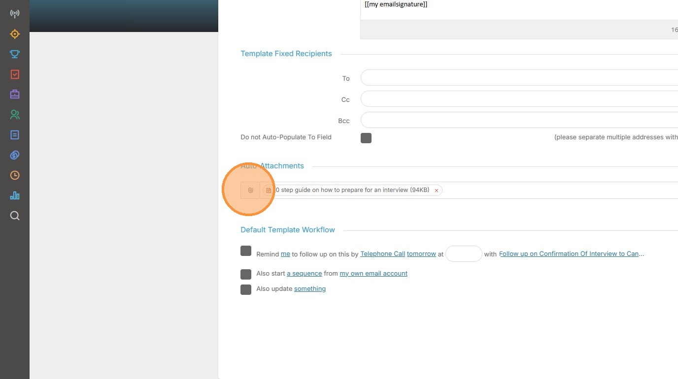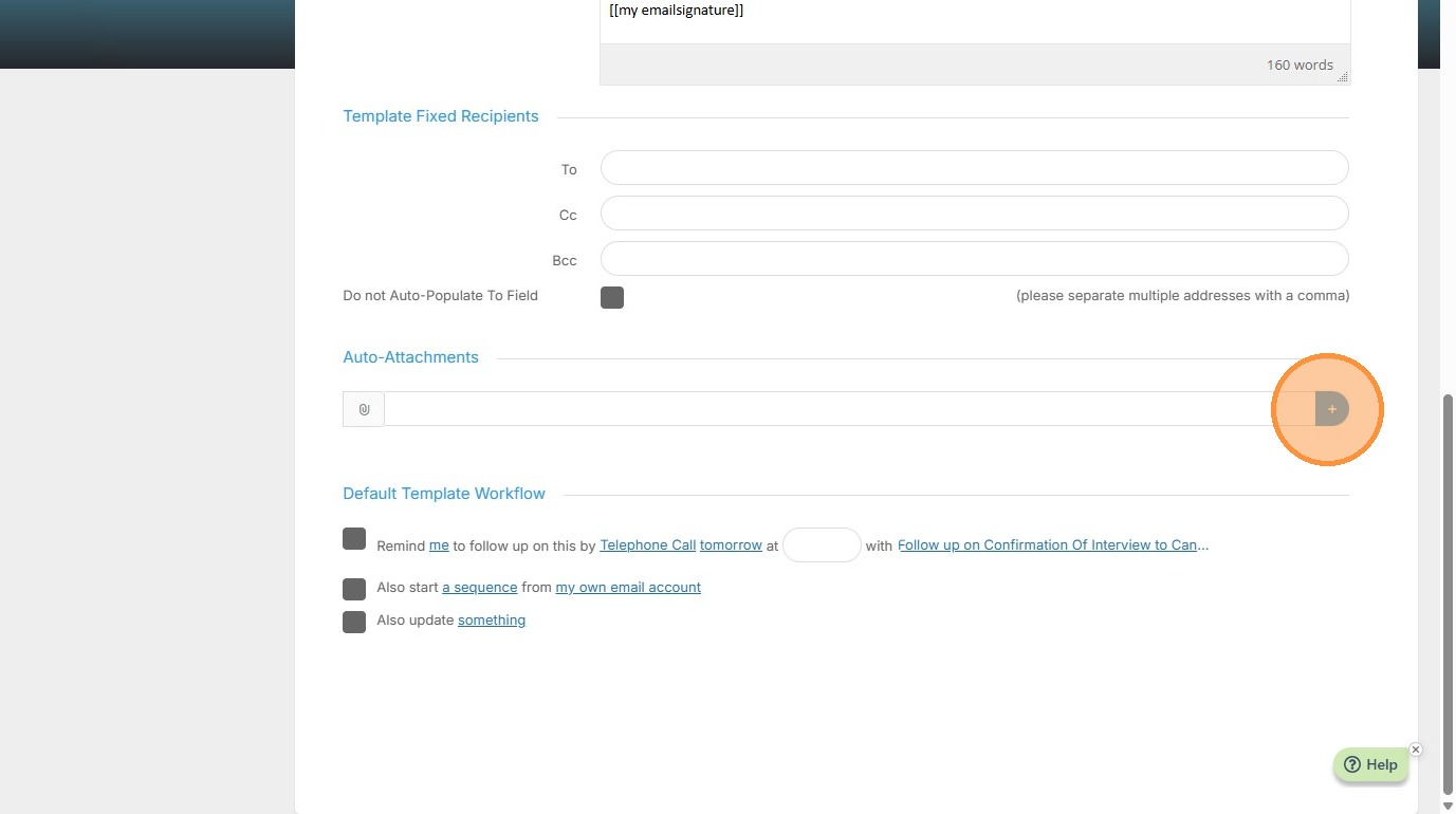 6. Once in the email, I'll scroll down to the Auto Attachments area. Here I'll click on the plus icon.