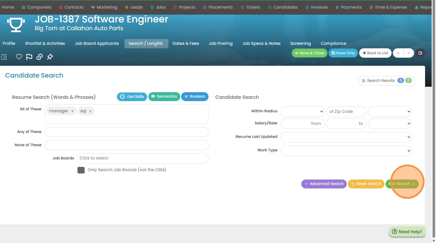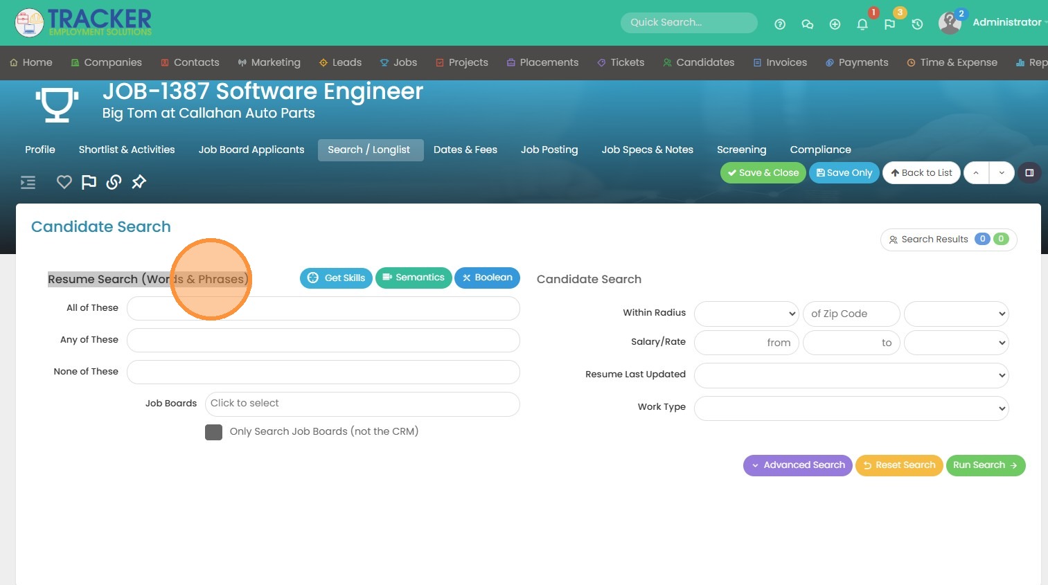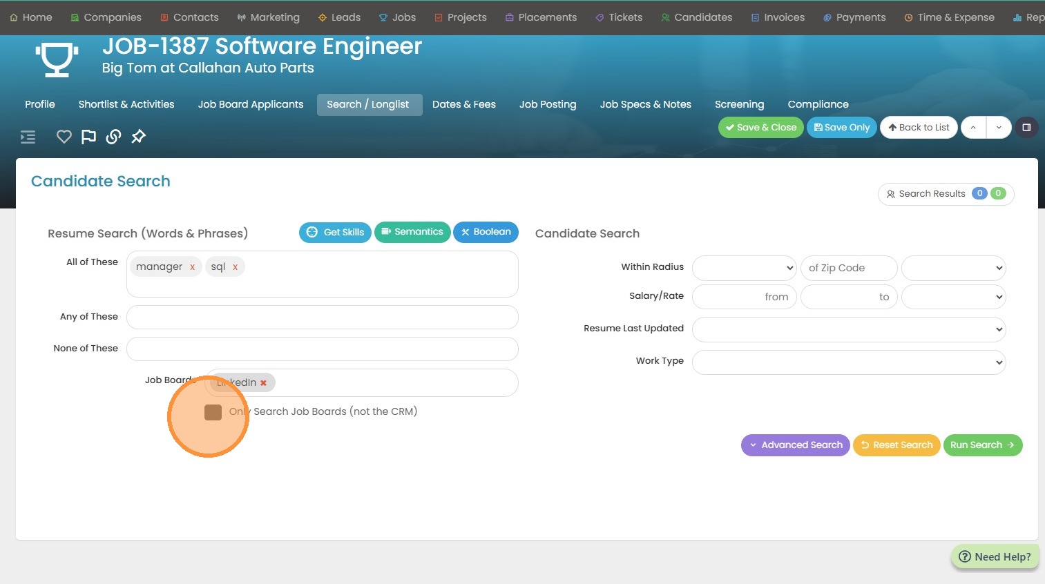 6. You can also choose to only search Job Boards and not TrackerRMS by checking off this box.