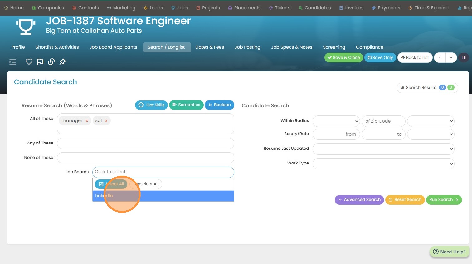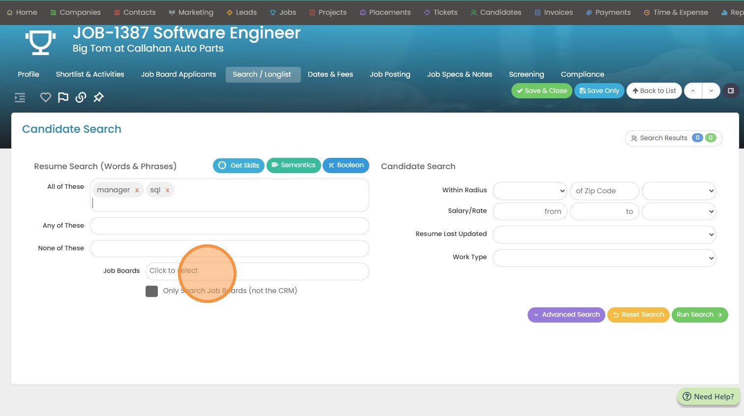 5. If you have any job boards integrated, you can also choose to search those by adding them here.