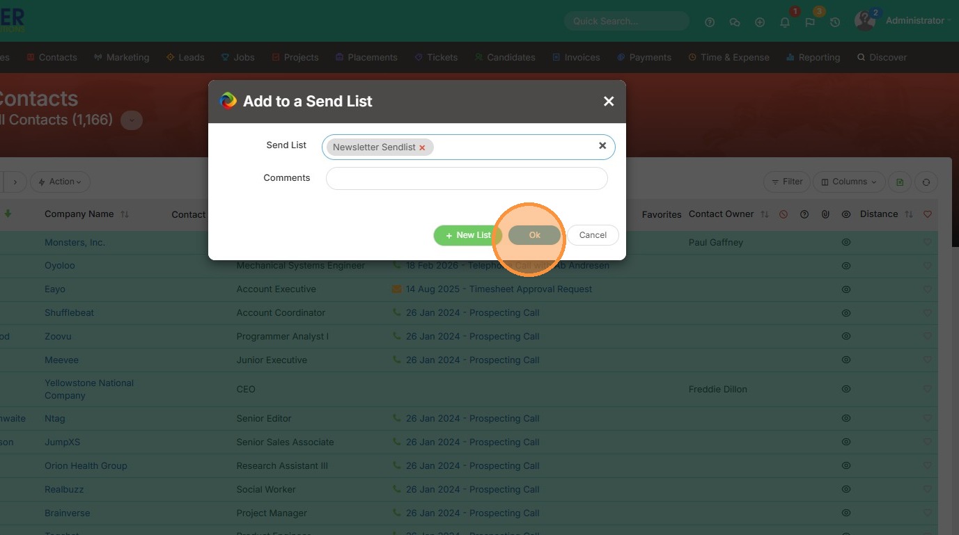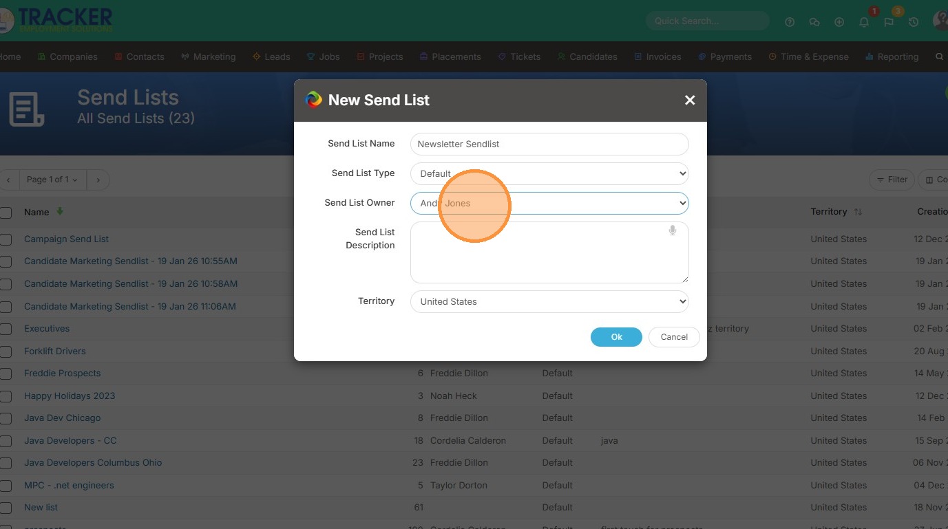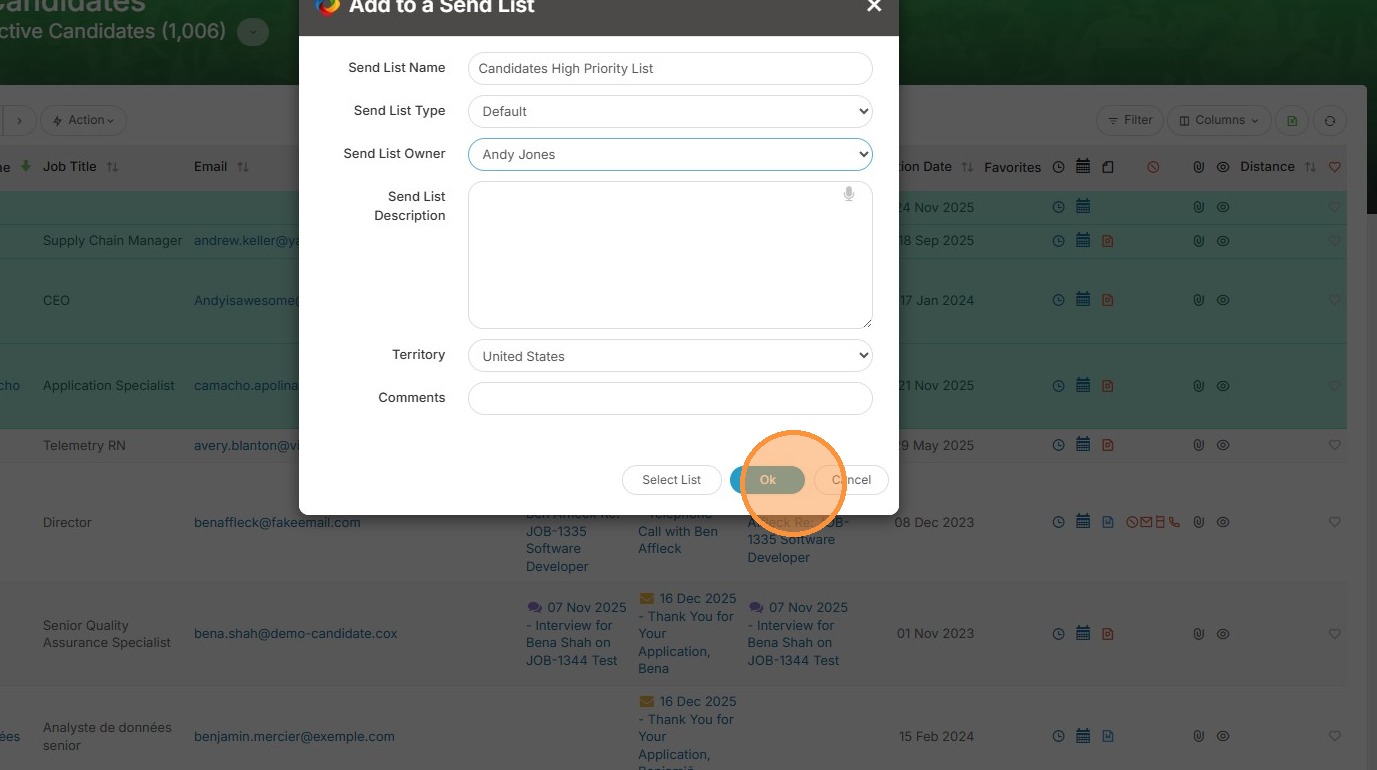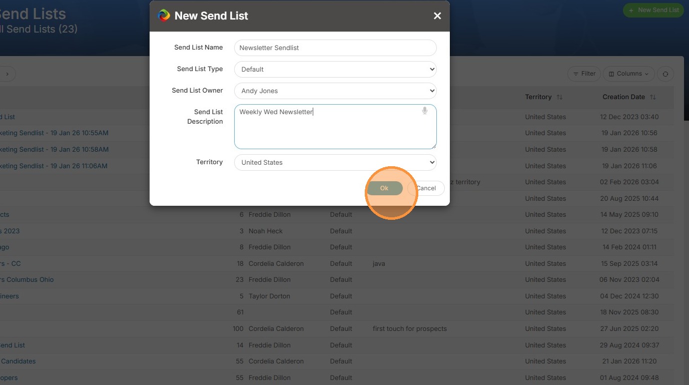 6. Click "Ok" to create the sendlist.