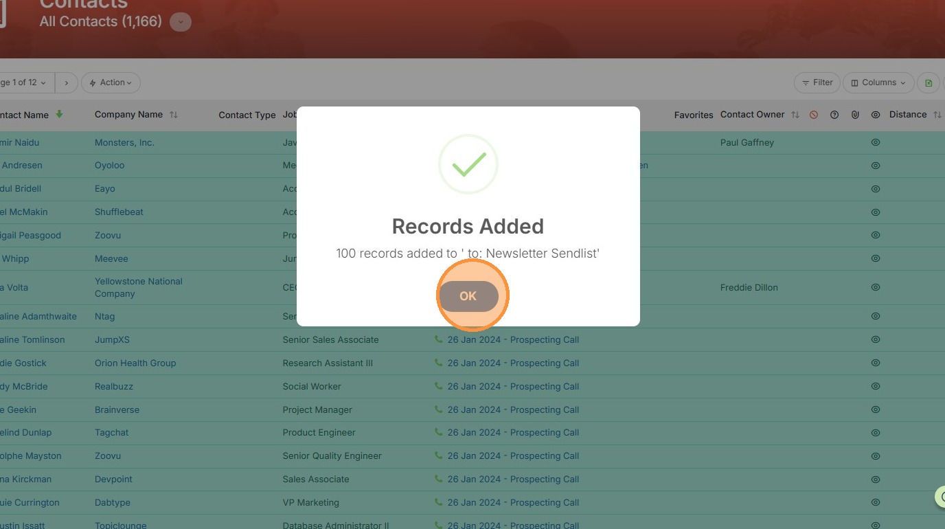 7. Select some contact records you want to add to this sendlist.