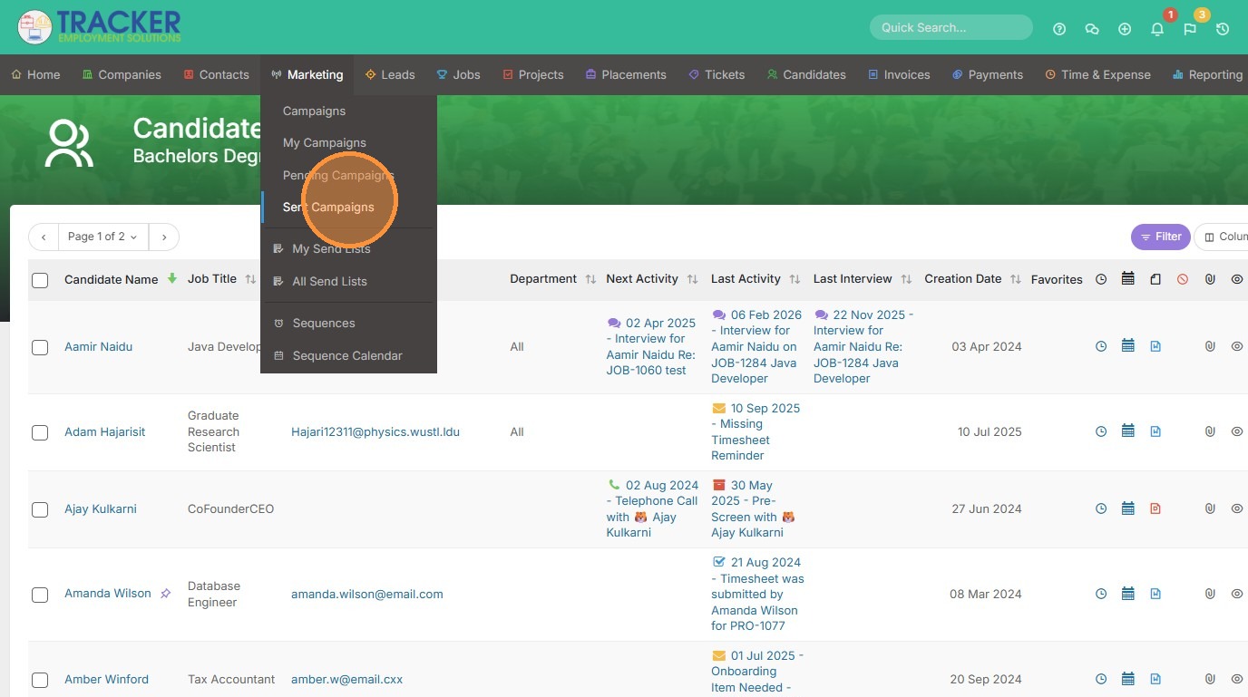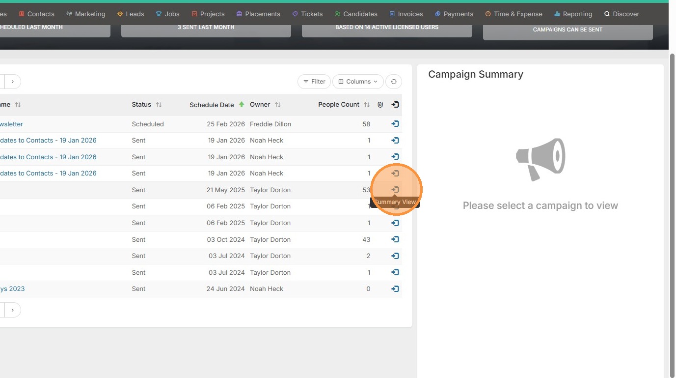 1. To preview campaign results, click "Sent Campaigns" from the Marketing tab.