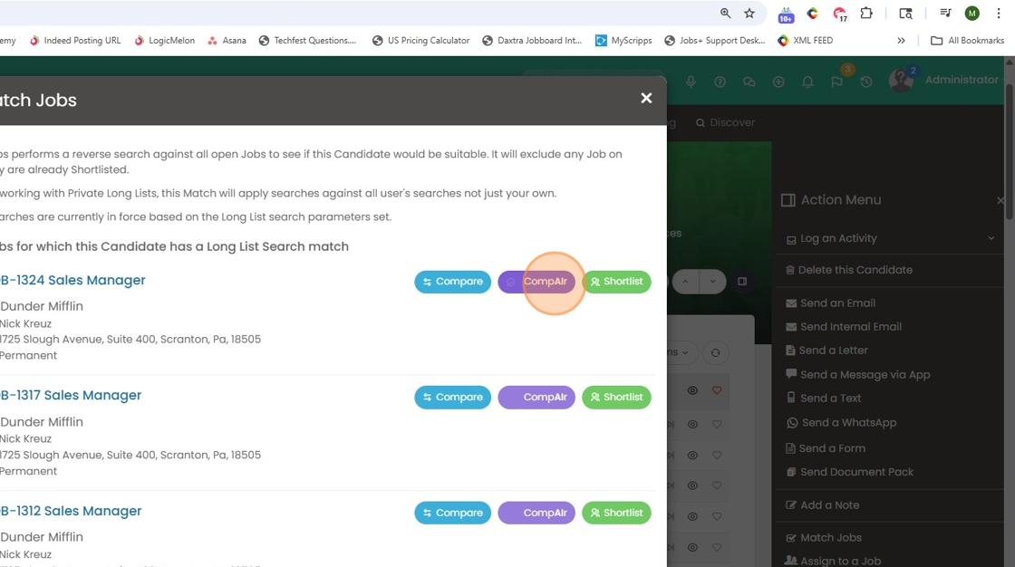7. Lastly, you can shortlist the candidate for any of the matched jobs from this screen.