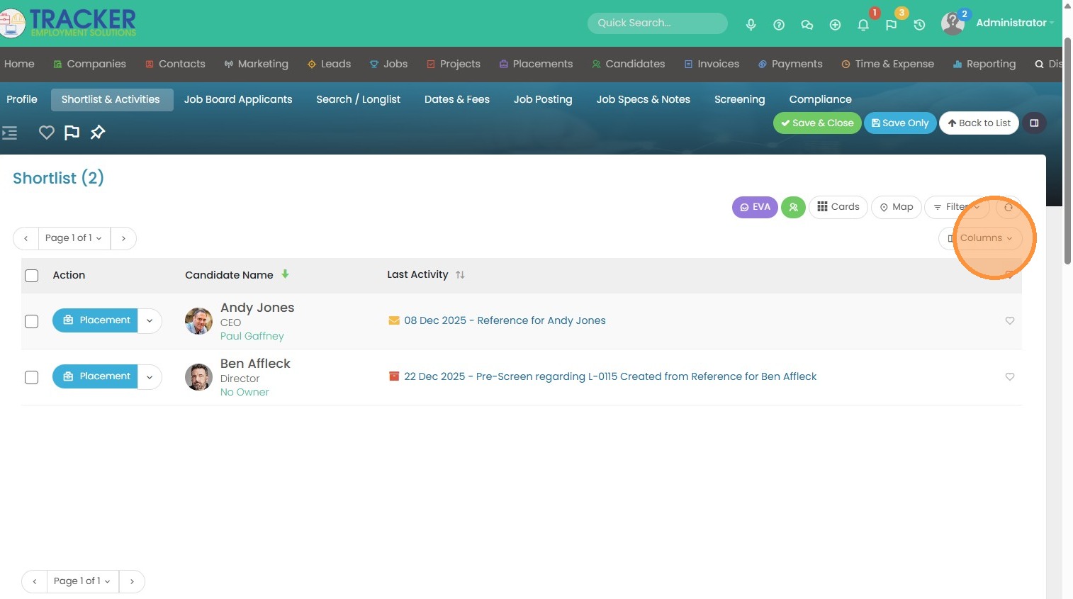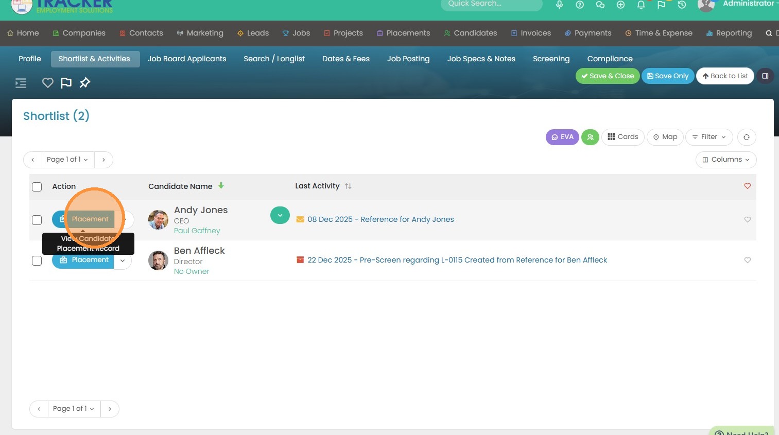 23. You can also open the placement record from this screen by clicking on the blue icon.