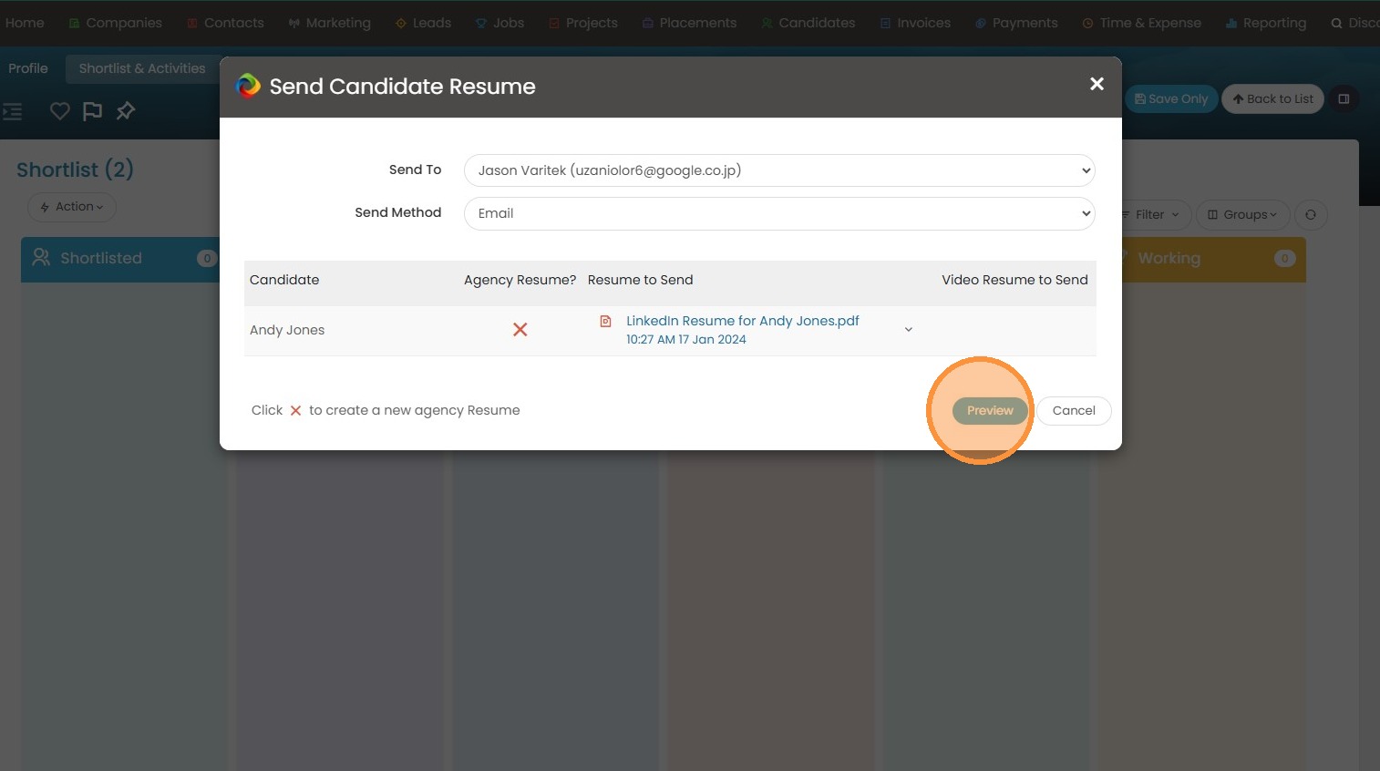2. Here you can select Workflow to send resumes, arrange interviews and more.