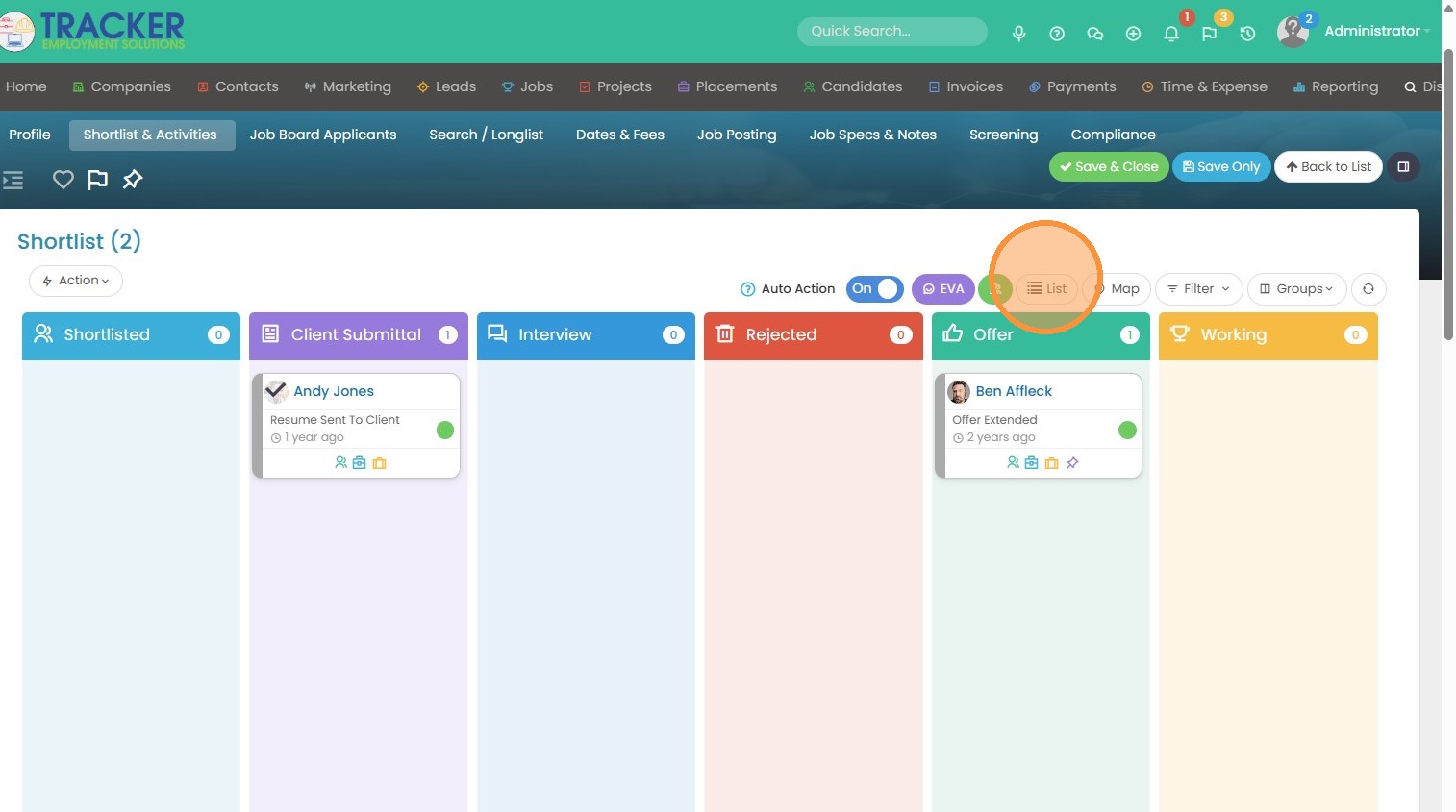 17. List will change this layout from the card view to a list view, allowing you to add columns with more details about the candidates. Some people prefer this view instead (You can also set your jobs up to automatically display in the List View vs Card View if you would like).