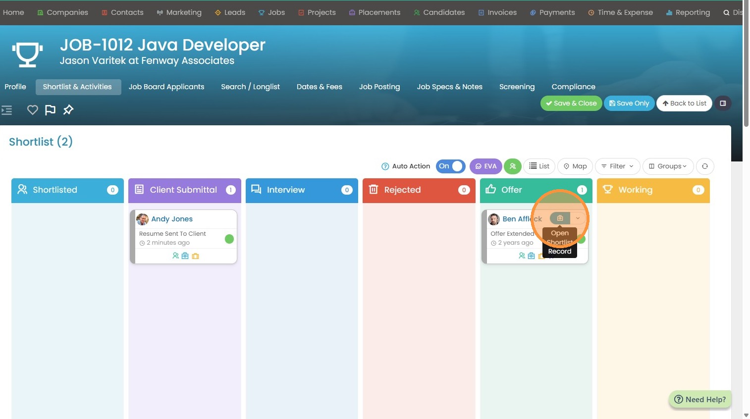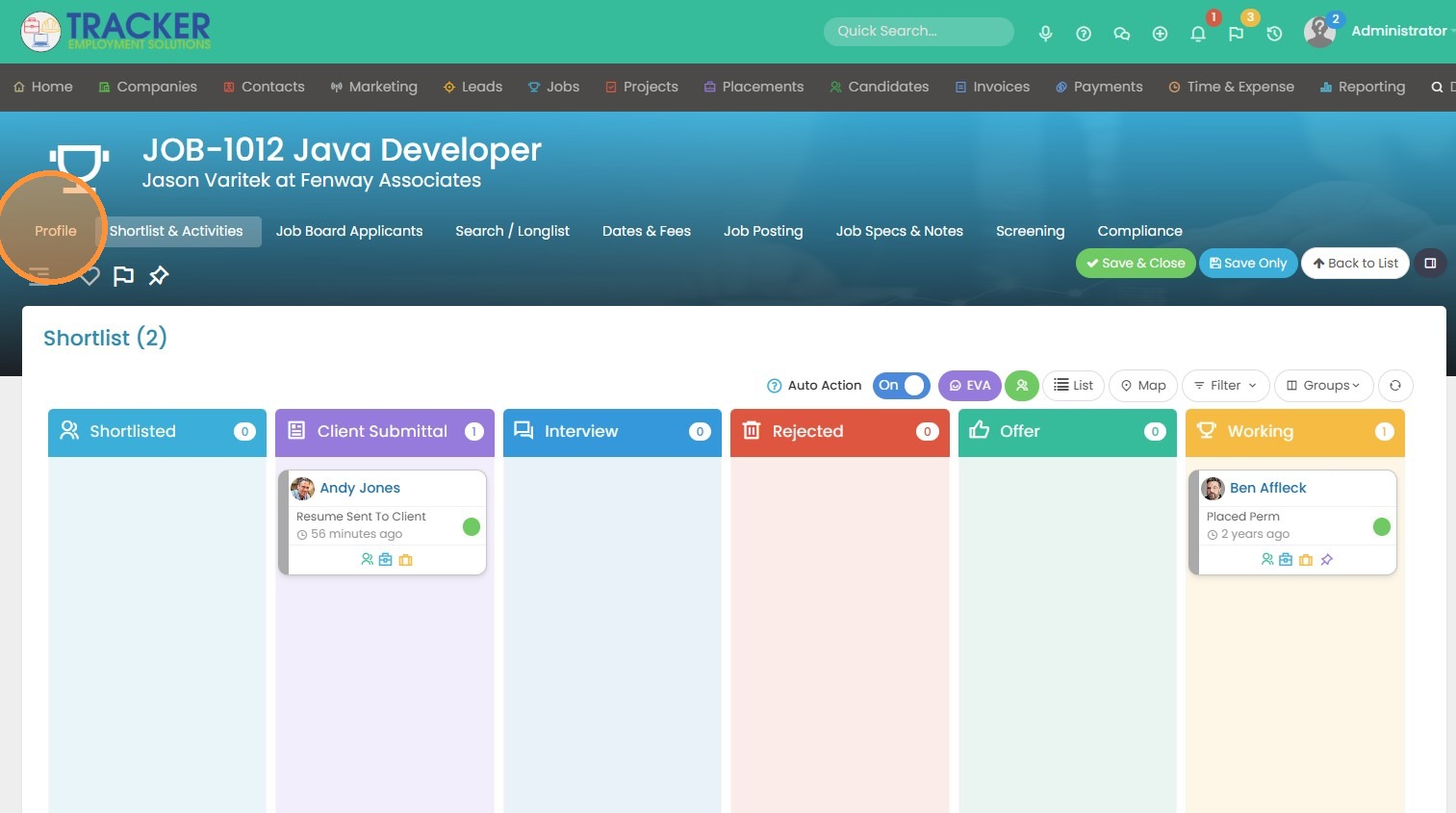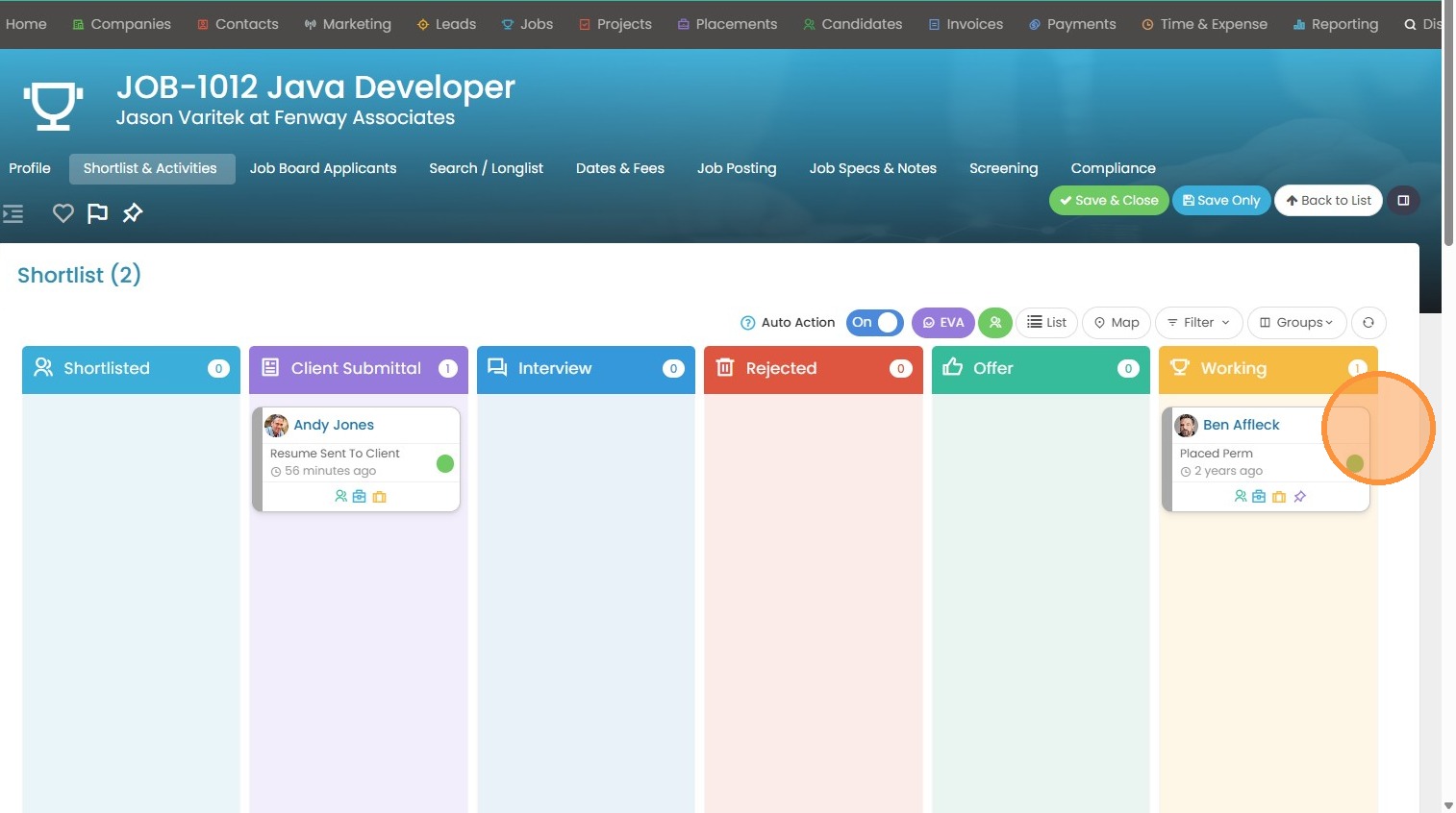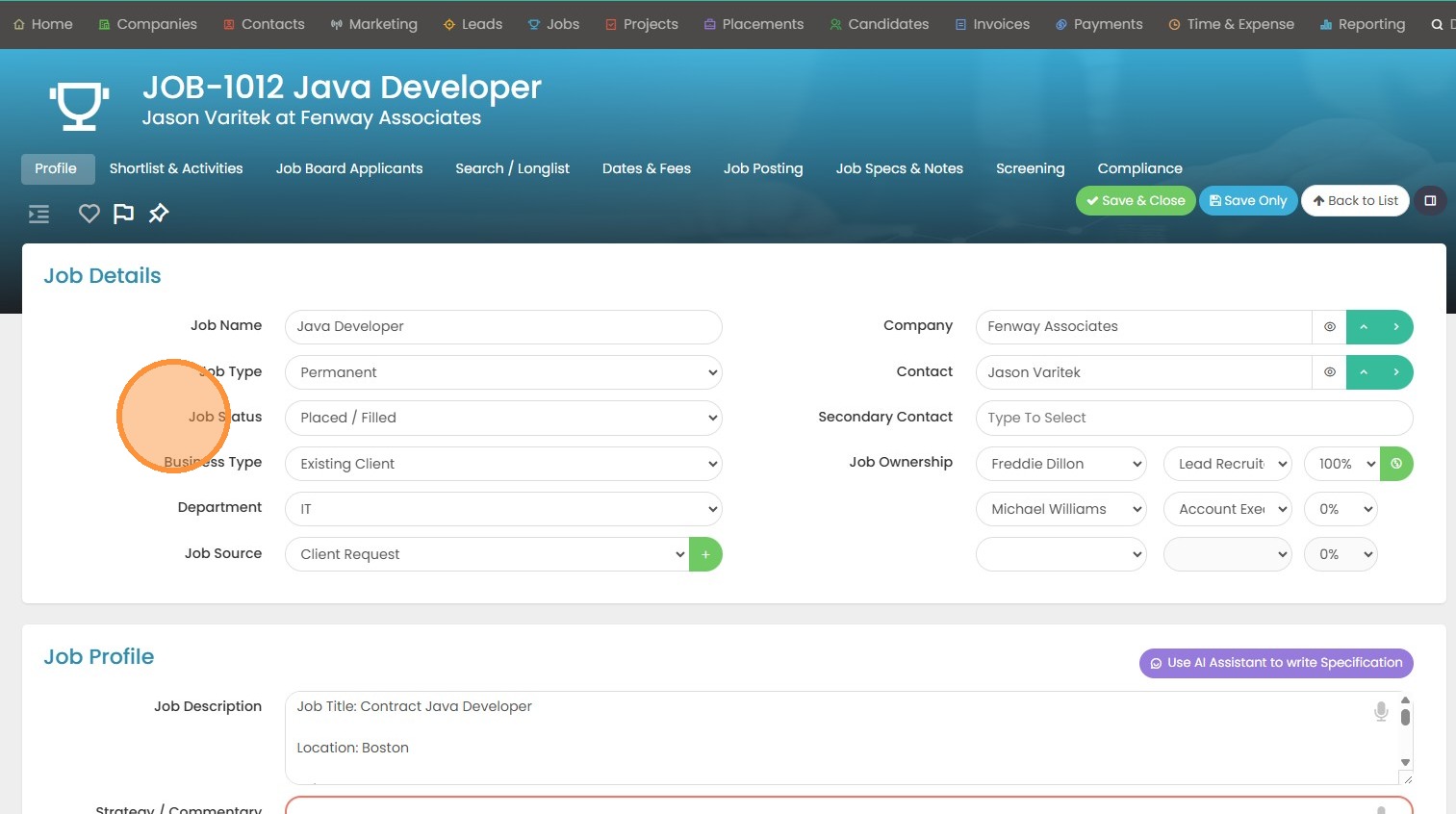 14. The job status has also auto-updated to Placed/Filled.
