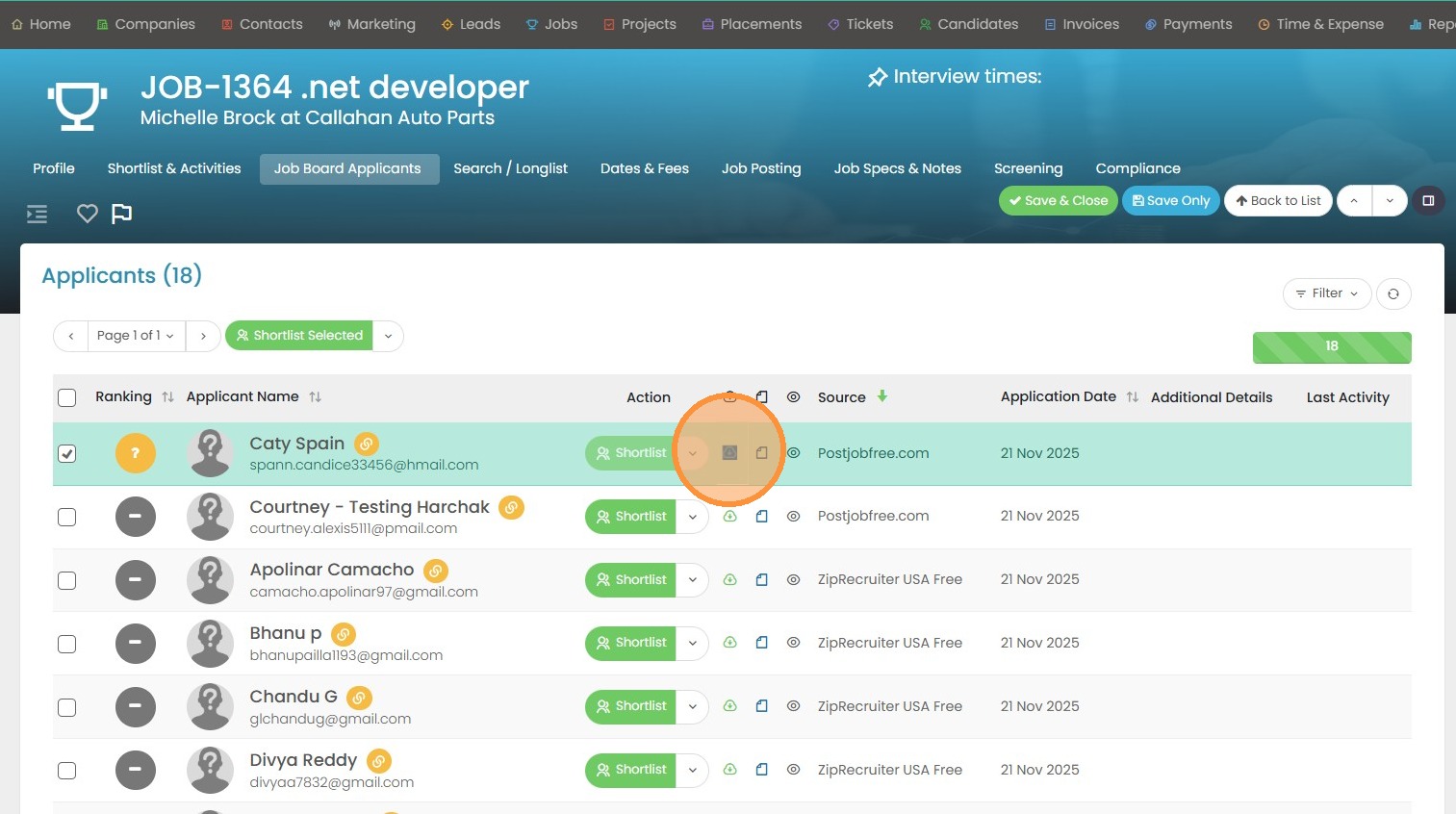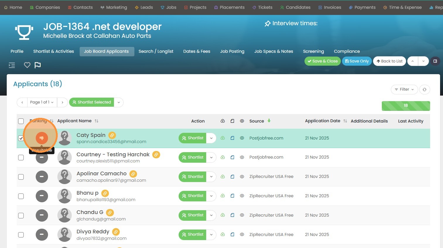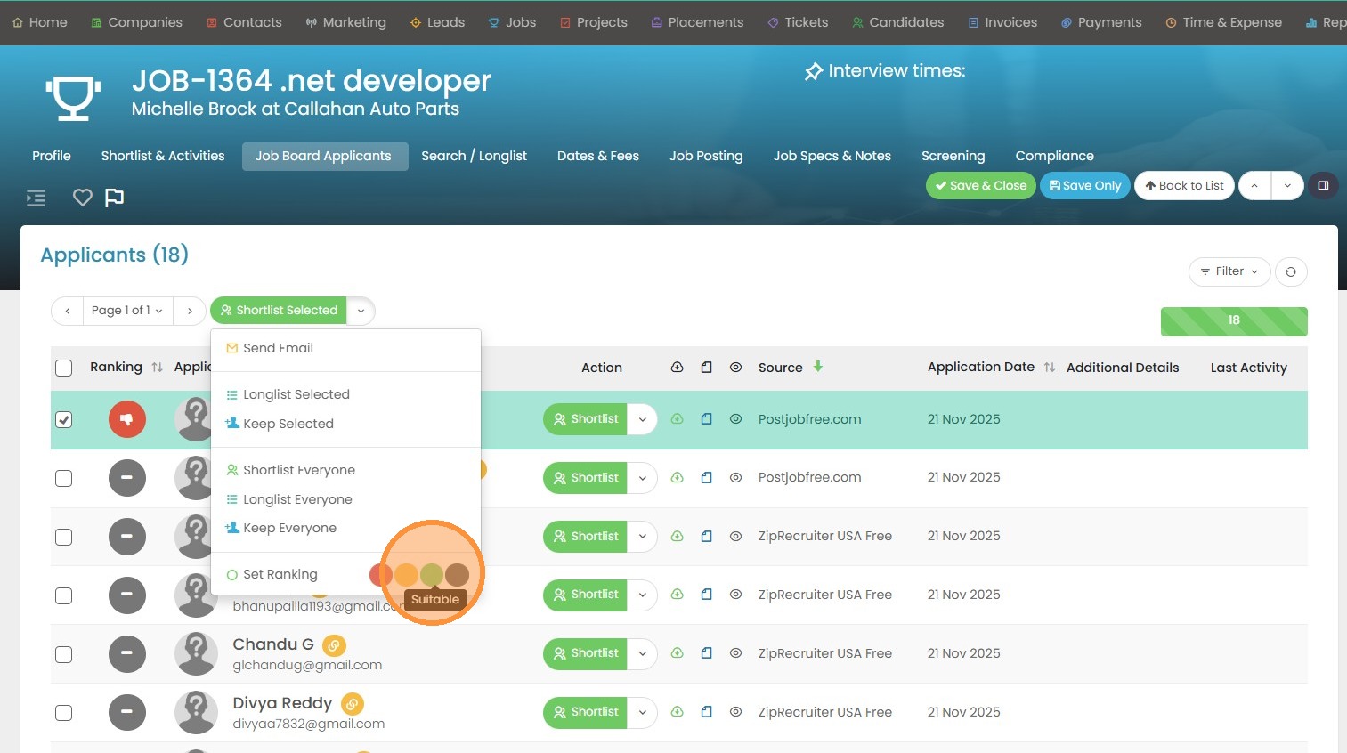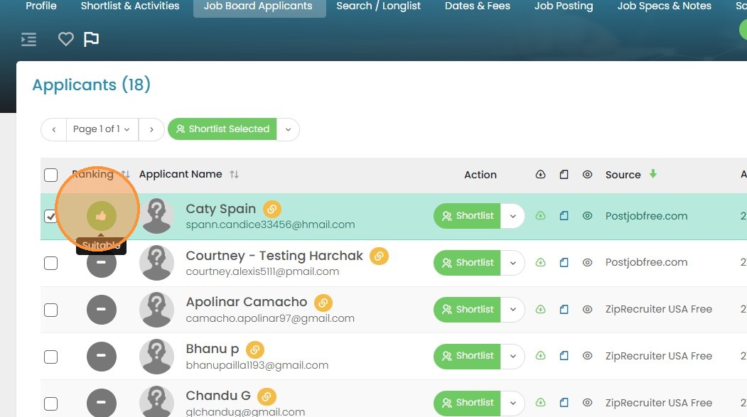 2. Once in the applicants section, you can take action. Such as rank these applicants by color, call them, text, email etc.
