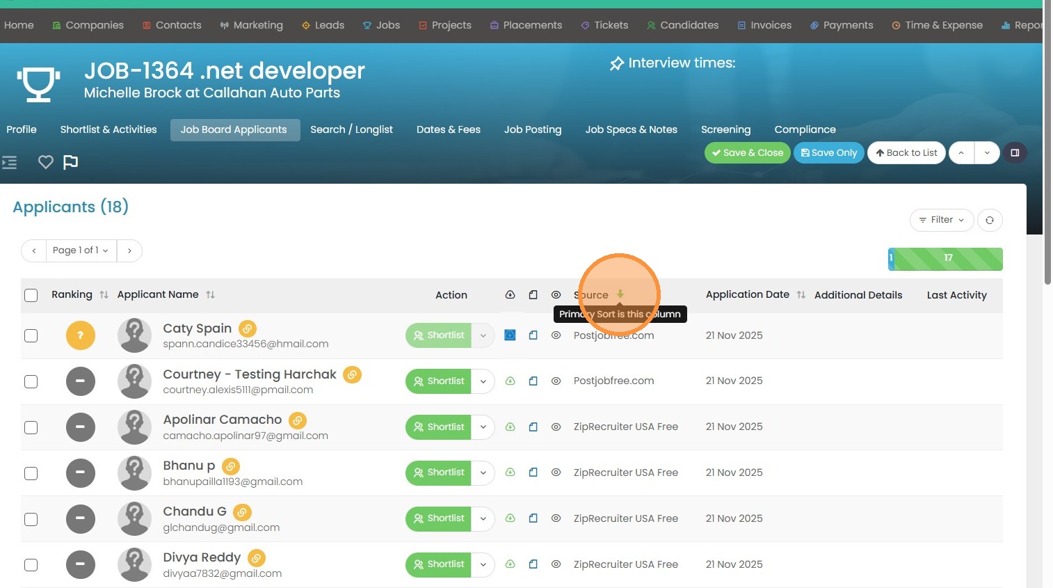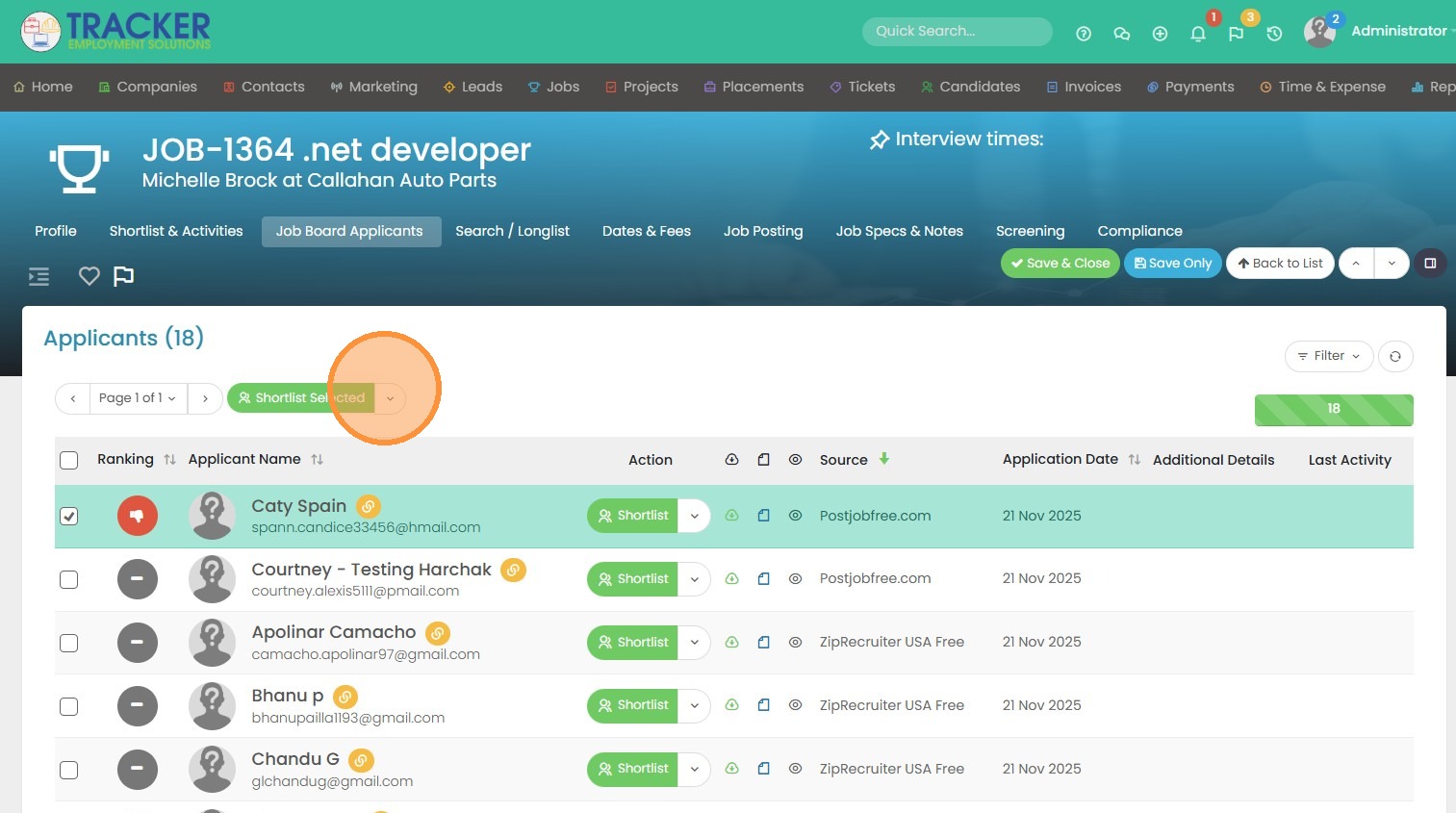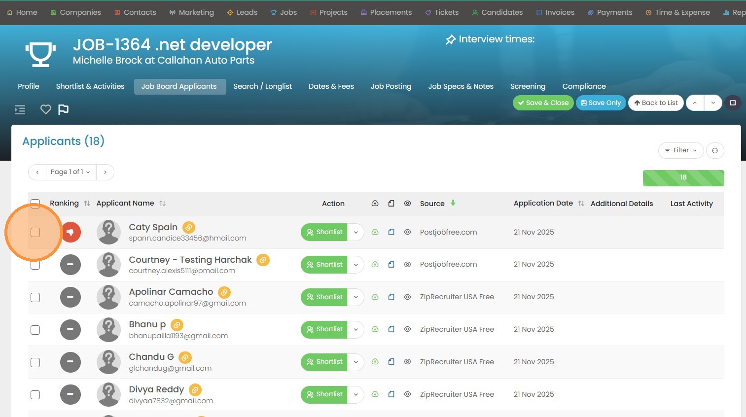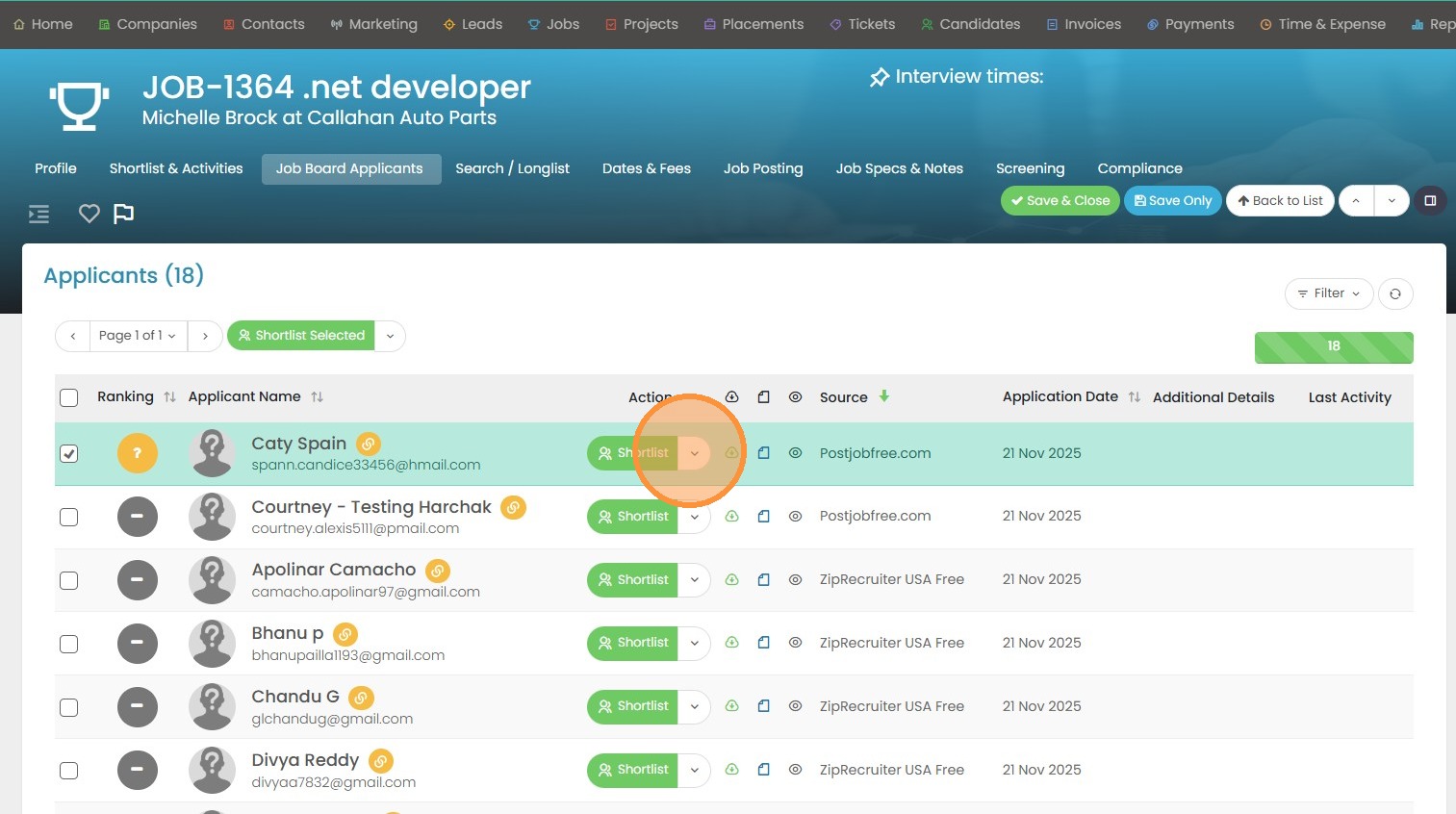 2. Once in the applicants section, you can take action. Such as rank these applicants by color, call them, text, email etc.