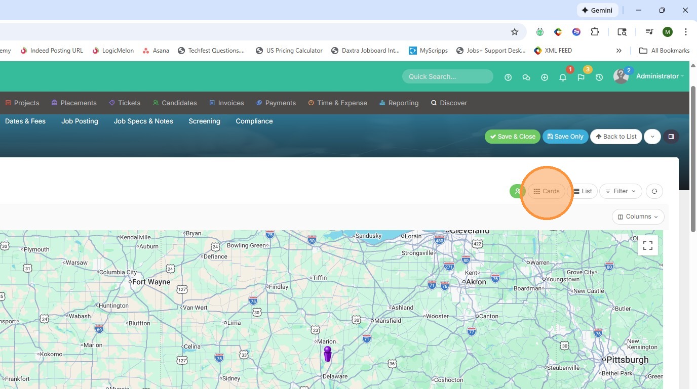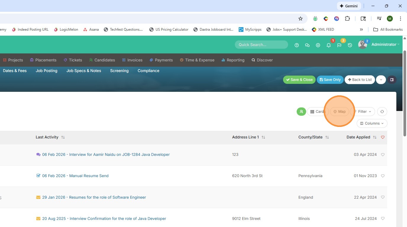 9. The purple icons indicate the candidates. When you click on these it highlights the candidate on the lefthand side of your screen. You can click on that candidate and quickly view their information.