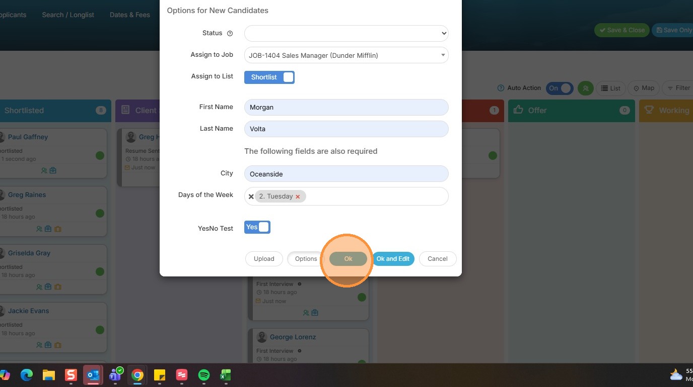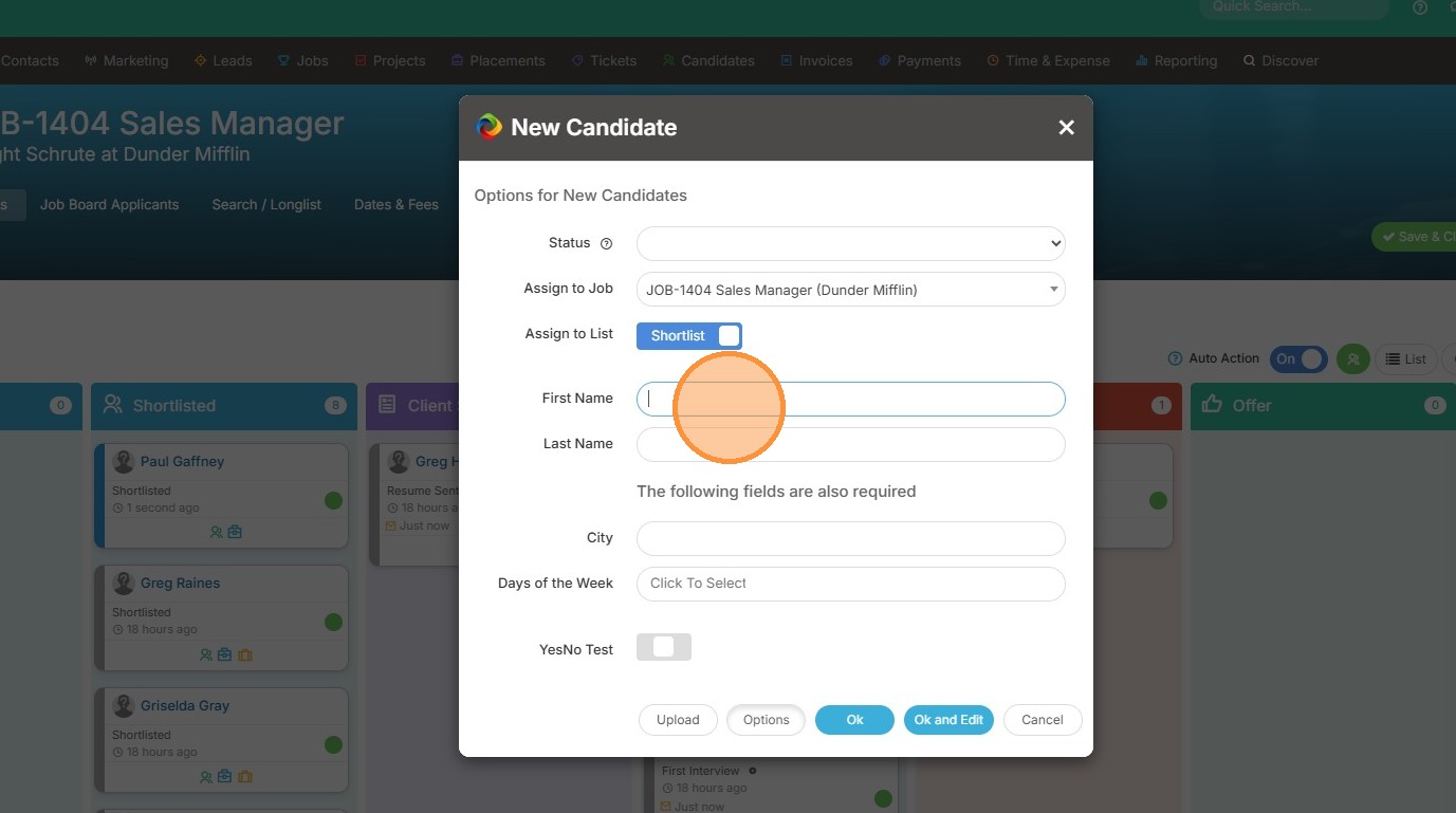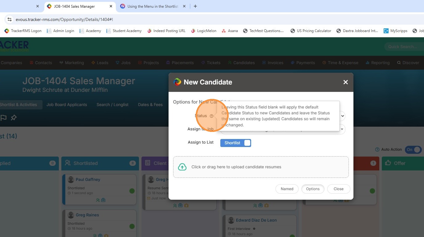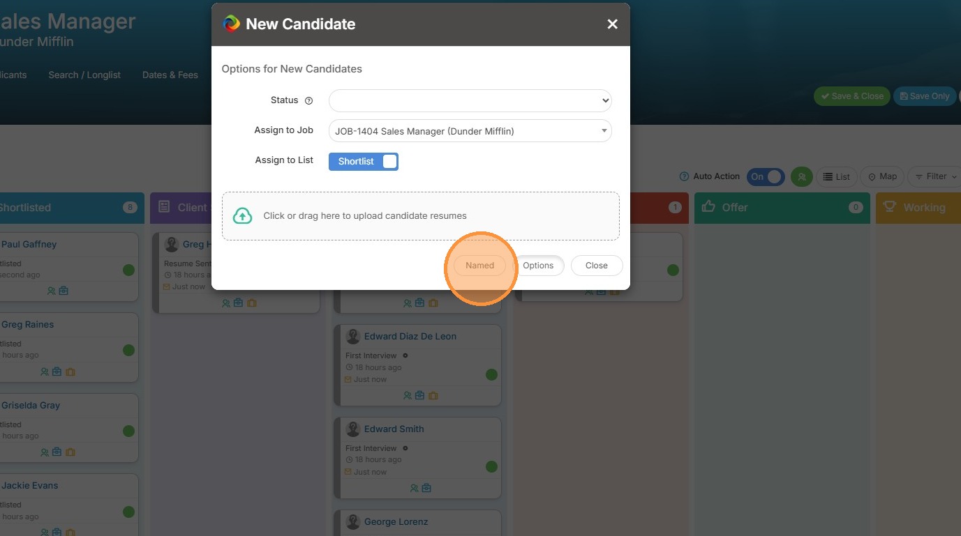 9. From here, you can either drag over the candidate's resume or use the Named option to type in their basic details.