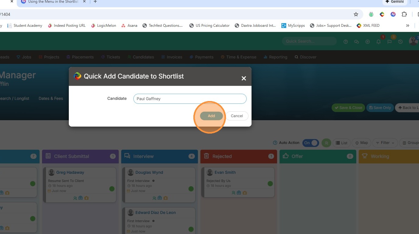 This lesson explains how to add Candidates to the Shortlist Using the Quick Add and New Candidate Option.