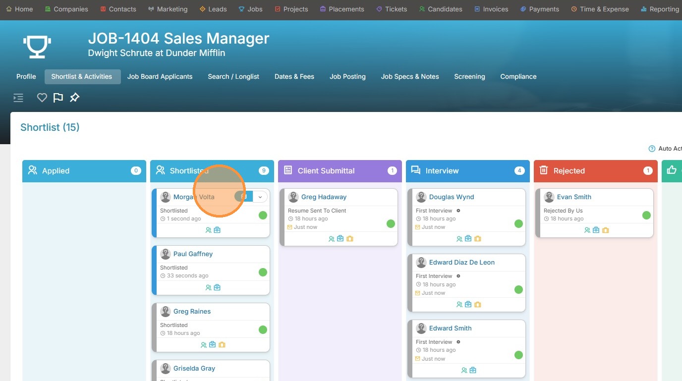 11. This new candidate has now been added to the Shortlist card.