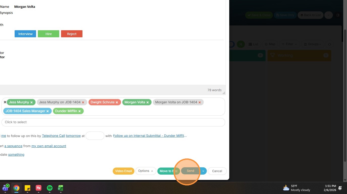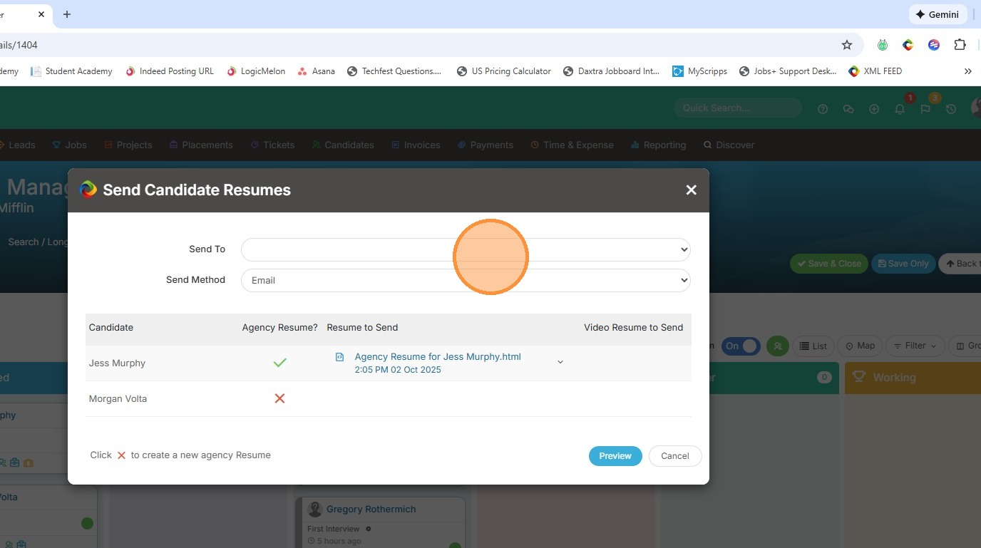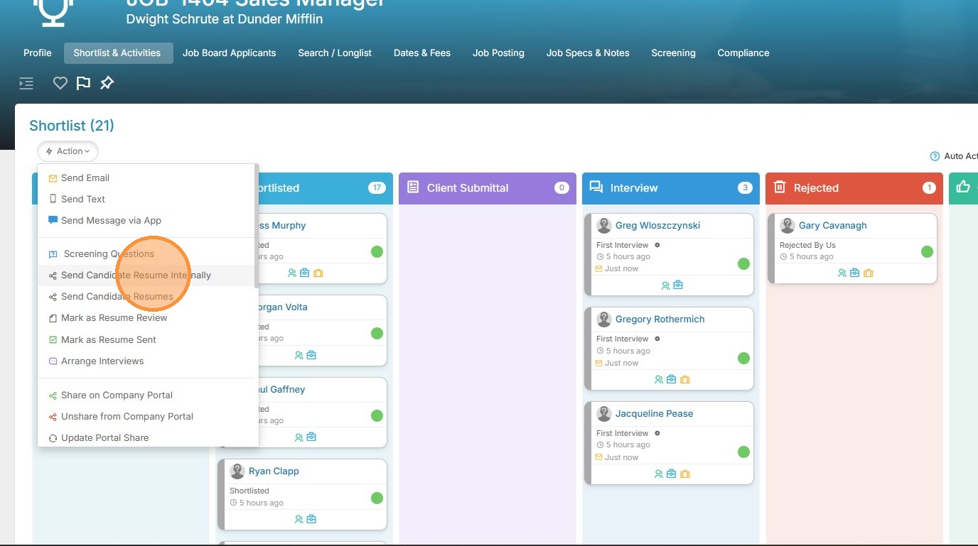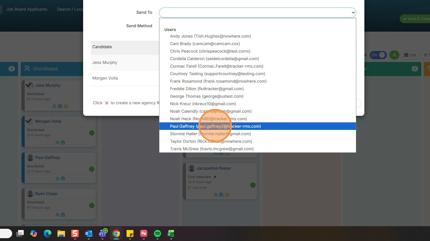 6. You will notice it's all internal users listed because this is an internal resume send, not to the client.