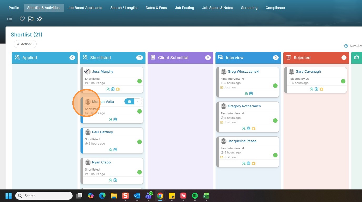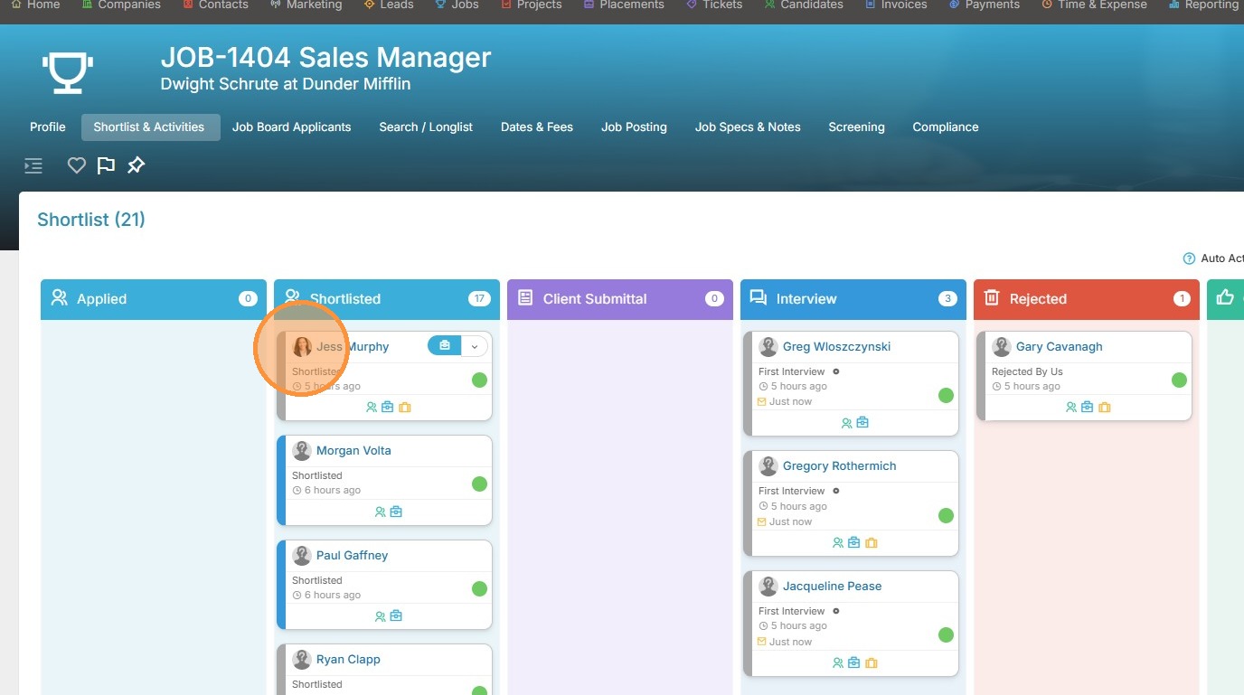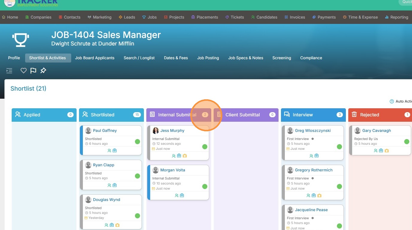 11. You'll then see both candidates have automatically moved to the Internal Submittal card.