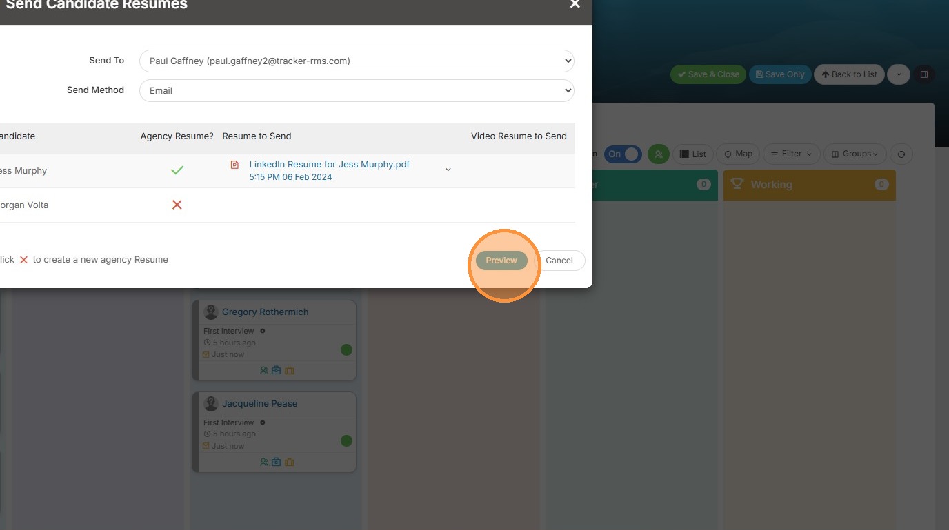 9. Click Preview, this will allow you to review the email to Paul before it sends.