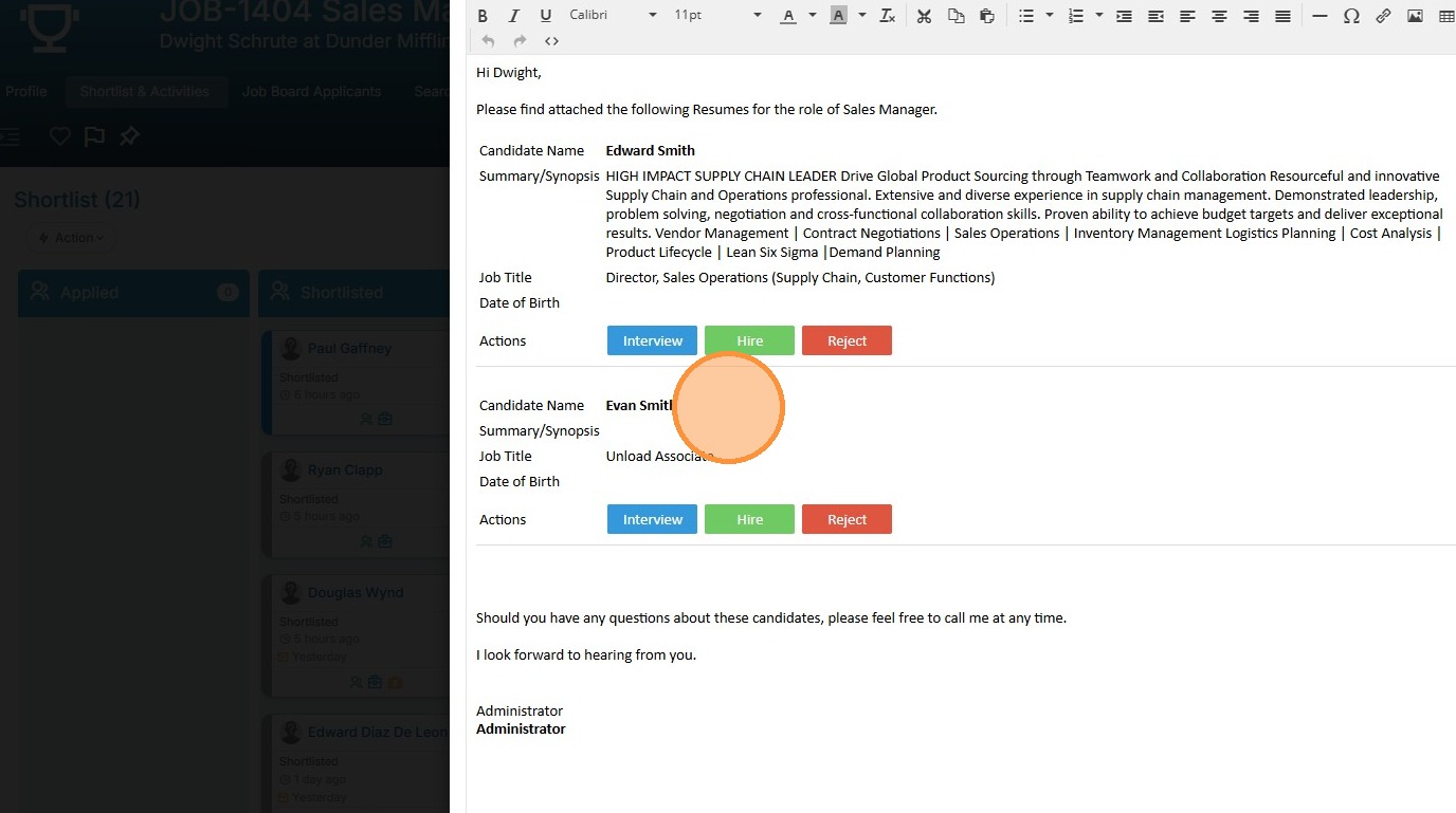 20. There's also two separate descriptions for each candidate, pulling info from their specific candidate records. If you need to edit the info that's pulled into the email template, check out this help file on how to edit the candidate resource summary in your Placement Settings.