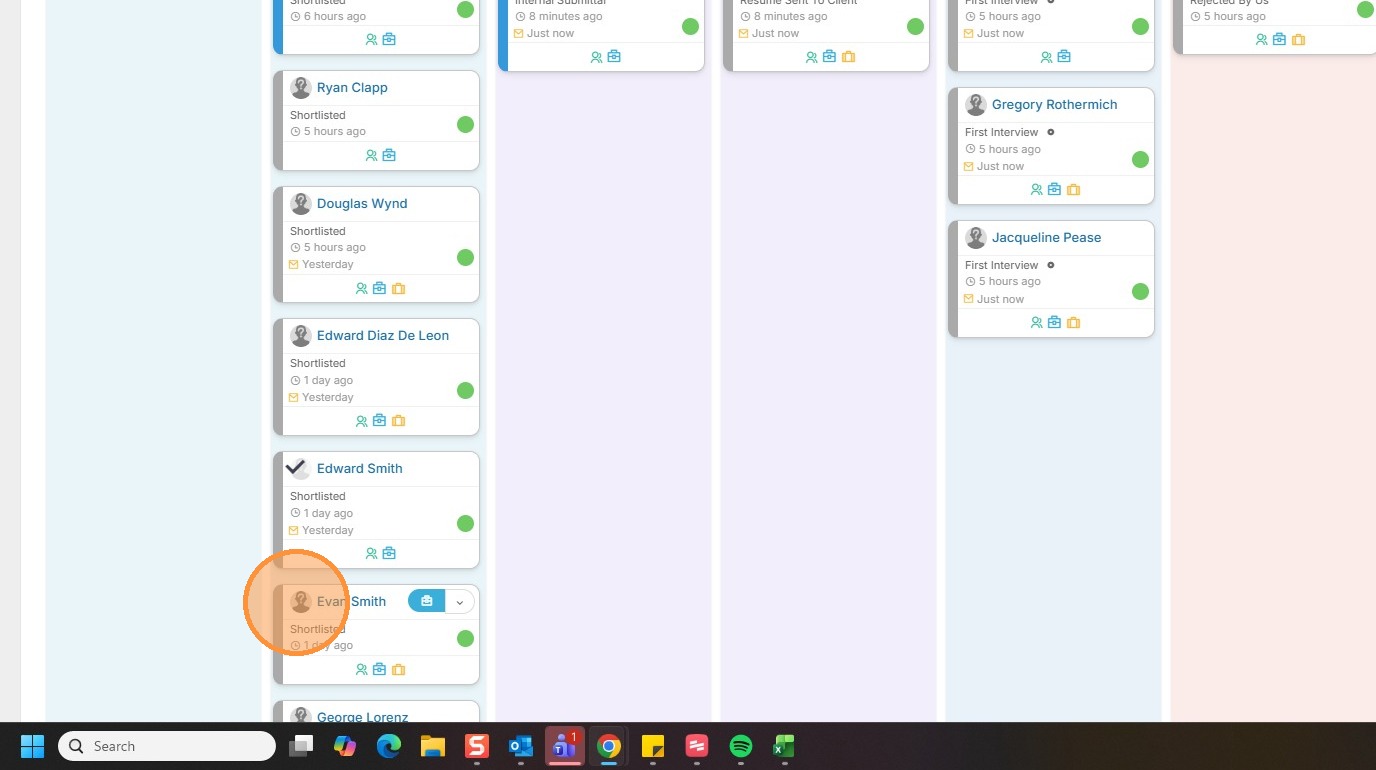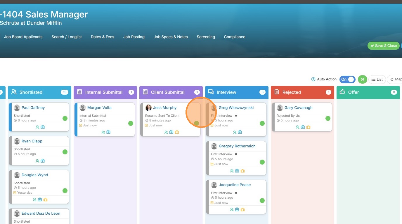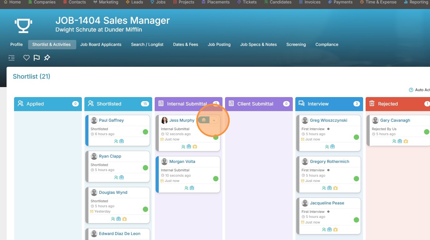 22. You can see both candidates have moved to the Client Submittal card, along with Jess Murphy.