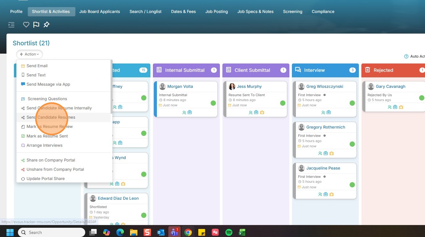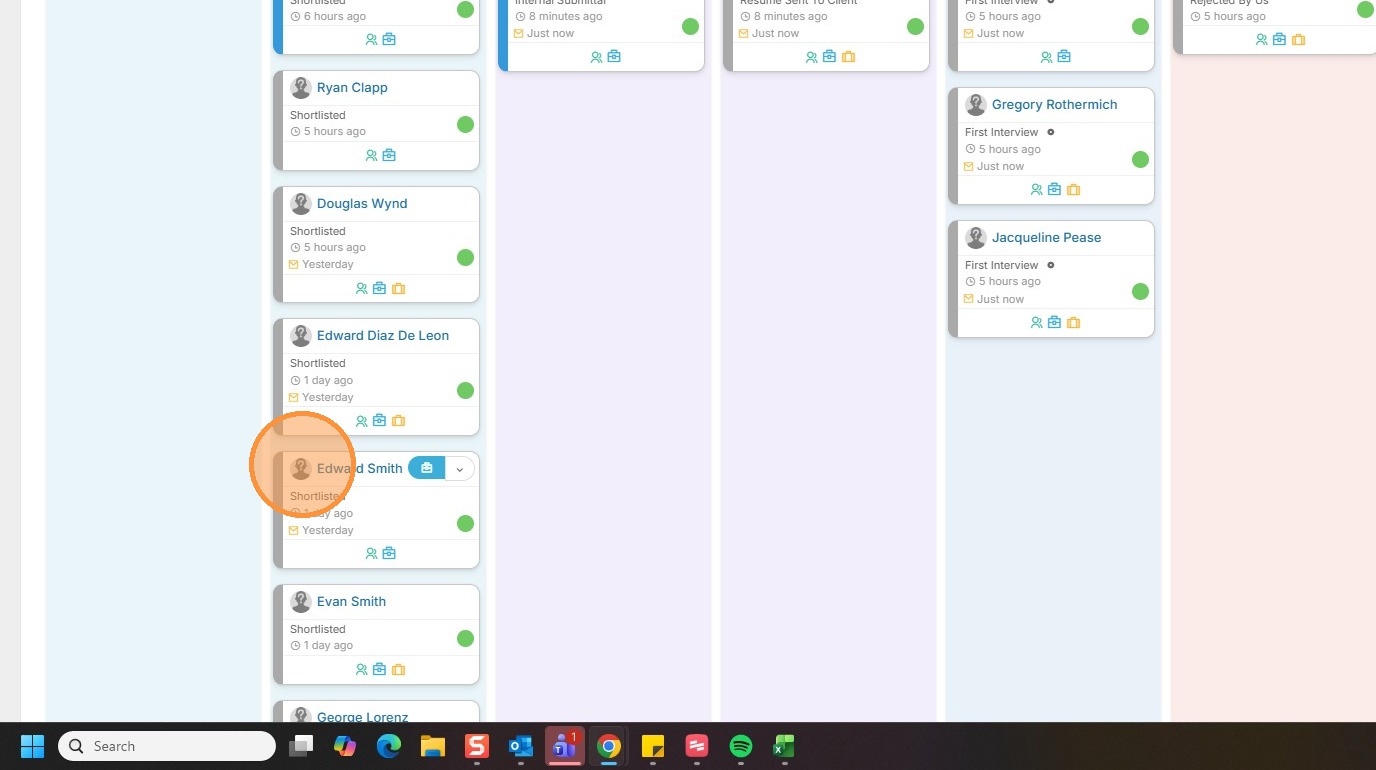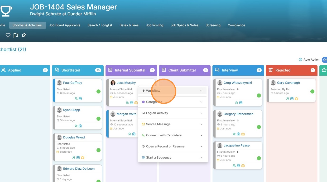22. You can see both candidates have moved to the Client Submittal card, along with Jess Murphy.