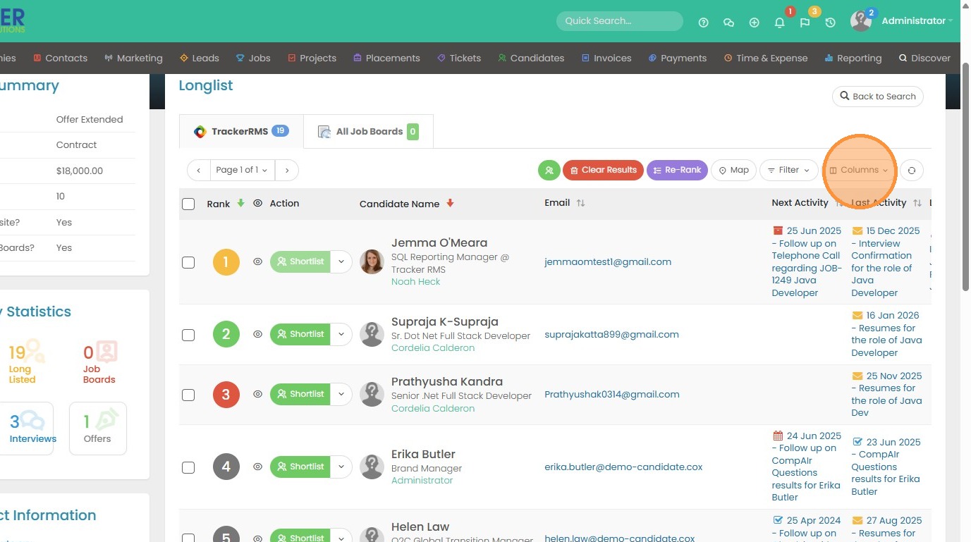 1. Within the longlist of a job, you can drag and drop columns by clicking on their title and placing it where you want it to go.