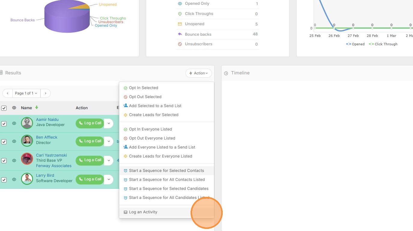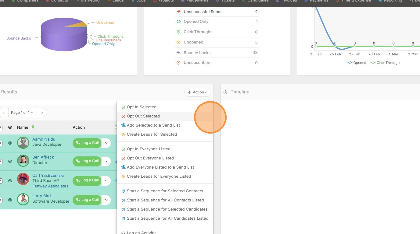 6. From here you can perform a few actions, such as opting in/out of future campaigns. You can also create leads, or start a sequence of emails for this group of individuals.