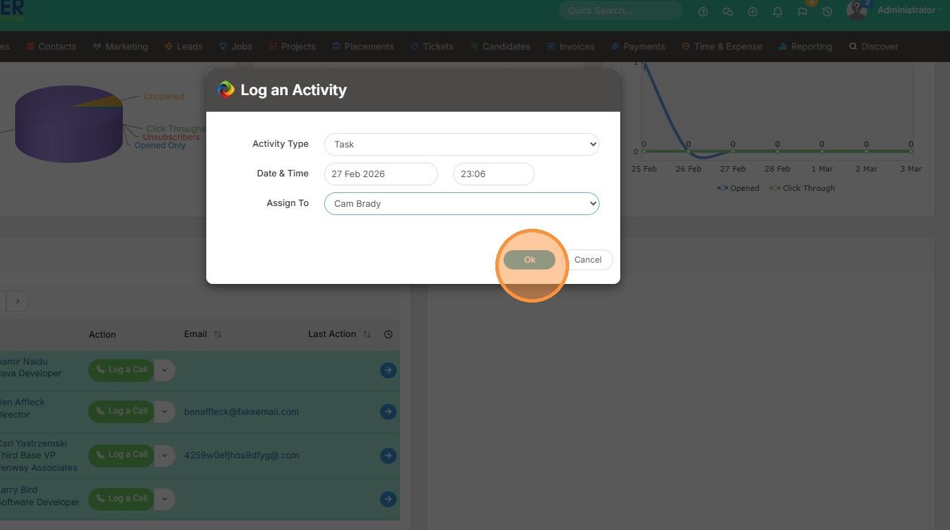 10. Click "Ok". This will appear in My To Do List or other future activity list views.