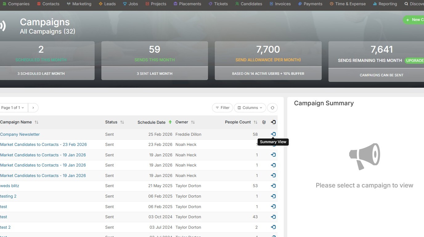 1. Go to your marketing tab and open Campaigns. From here, click the Summary View option.