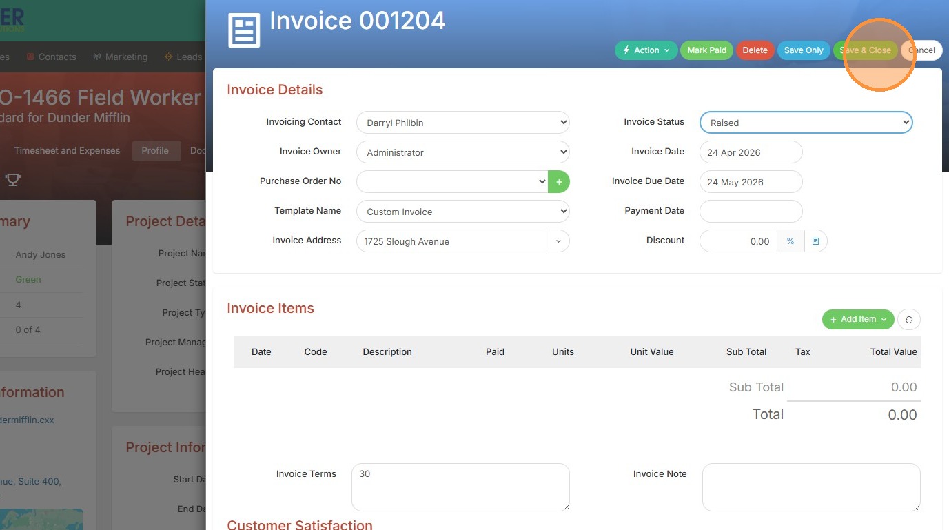 4. From here you can make any necessary edits to the invoice, and then save & close once you're done. This new invoice can then be viewed on your Invoices tab.